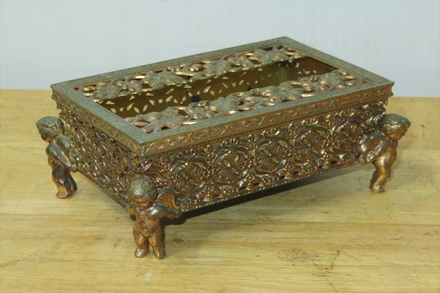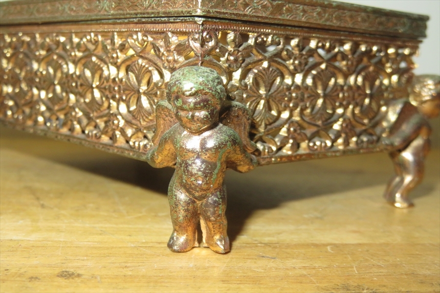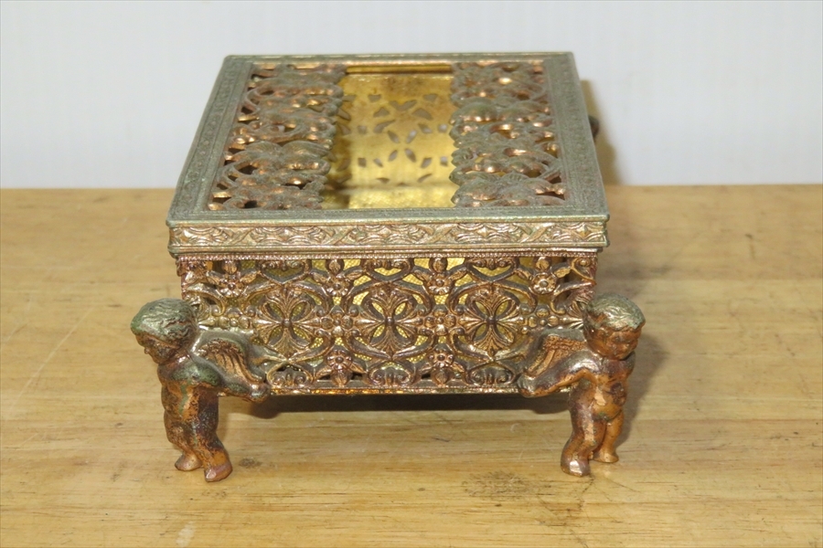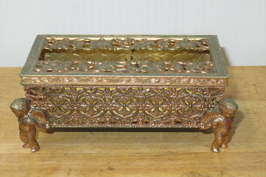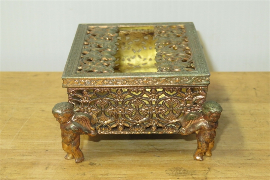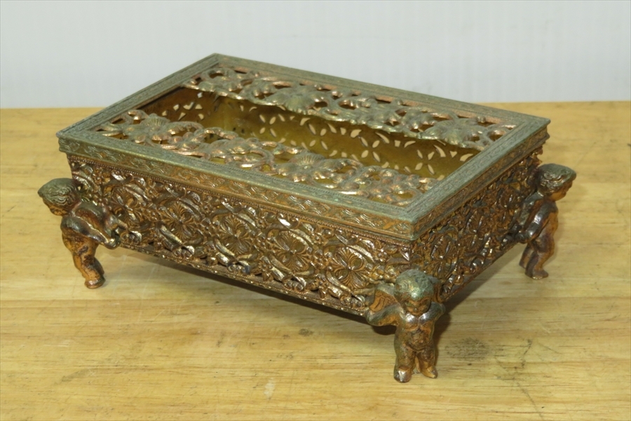 ●レトロ 80’ 真鍮 ポケットティッシュBOX ロココ 天使 小物入れ アンティーク調●
