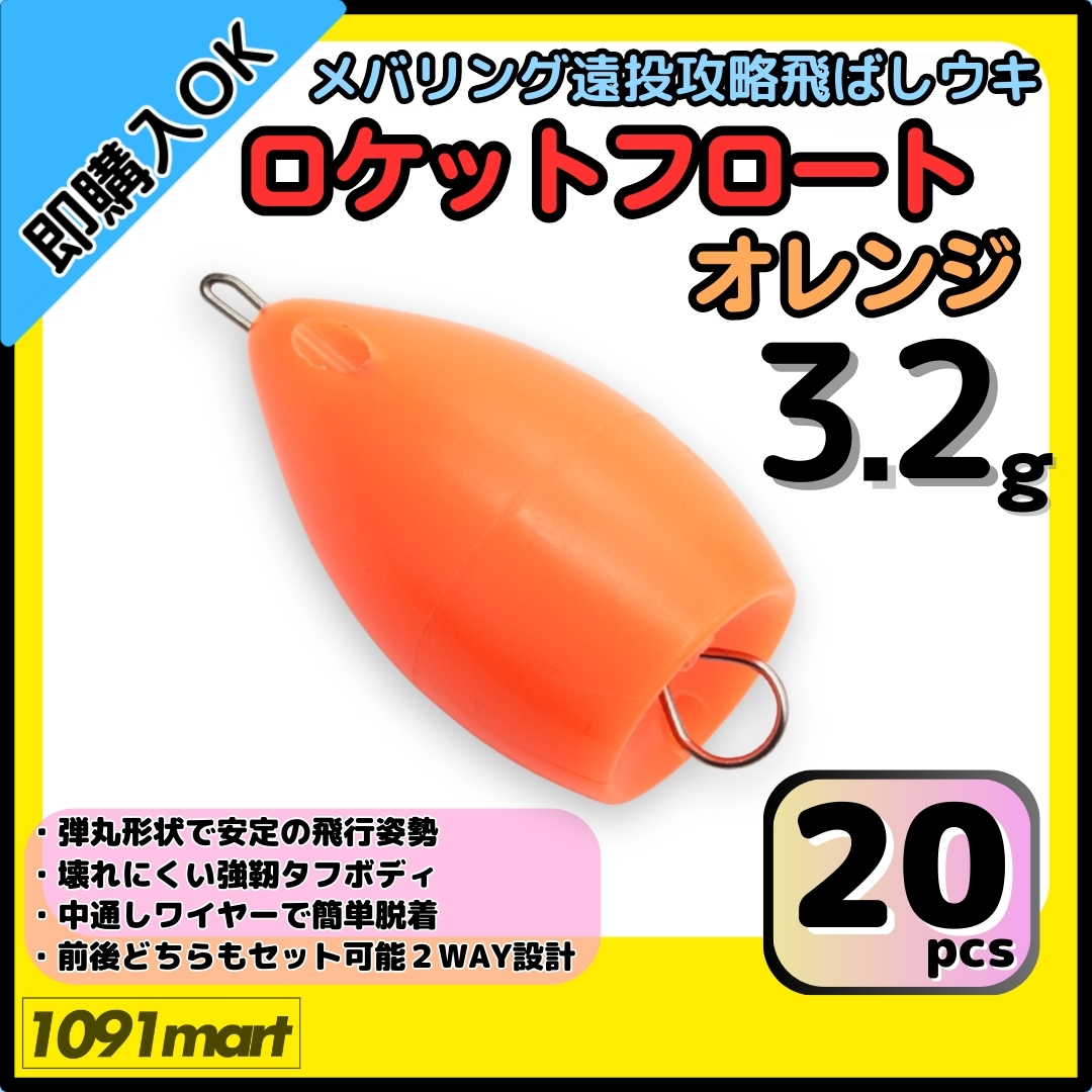 【送料無料】飛ばしウキ ロケットフロート オレンジ 3.2g 20個セット ワンタッチワイヤー式 メバリング キャスティングフロート
