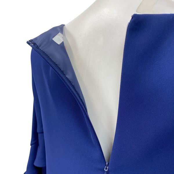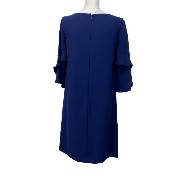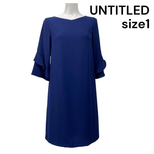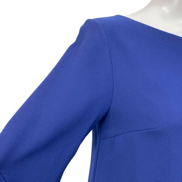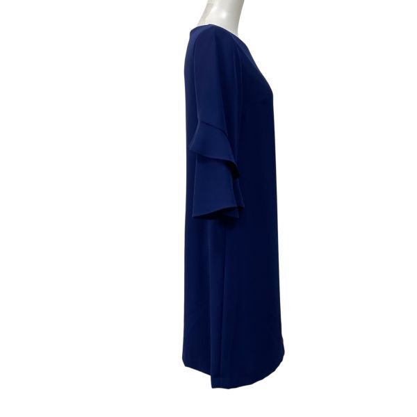 サックワンピース 膝丈 七分袖 トップス 袖口フレア Iライン ひざ丈ワンピース ボートネック
