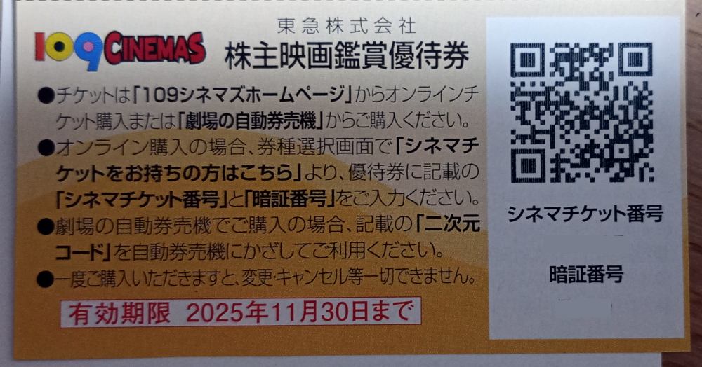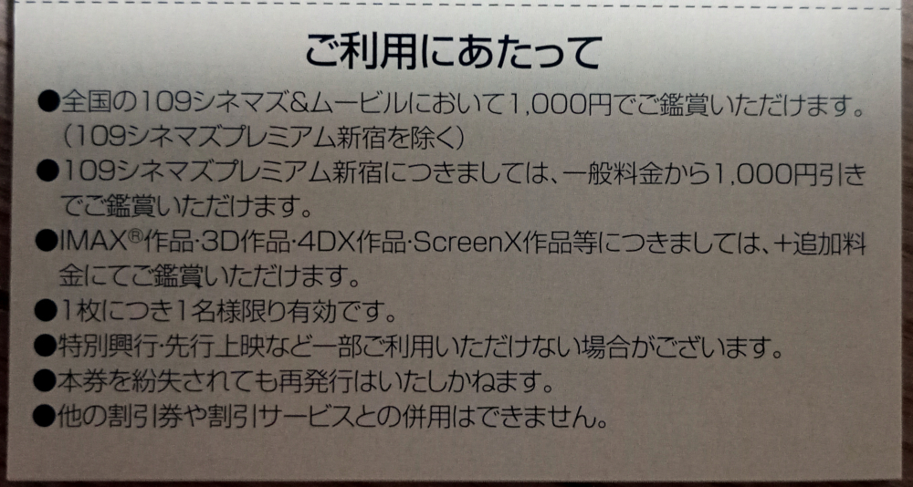 送料無 東急株主優待 109シネマズ株主優待券1000円鑑賞券