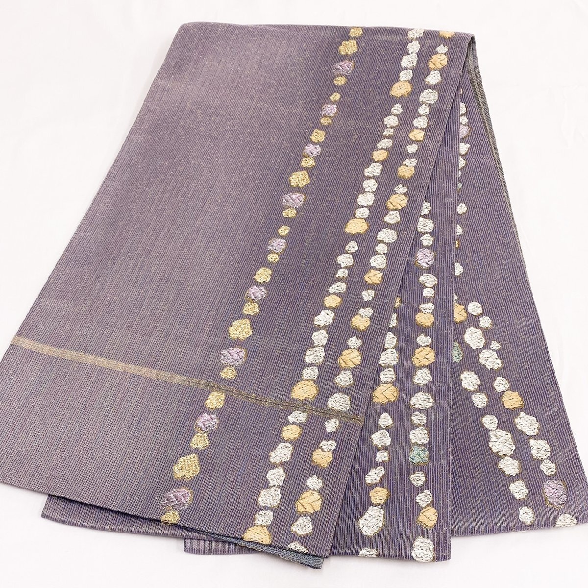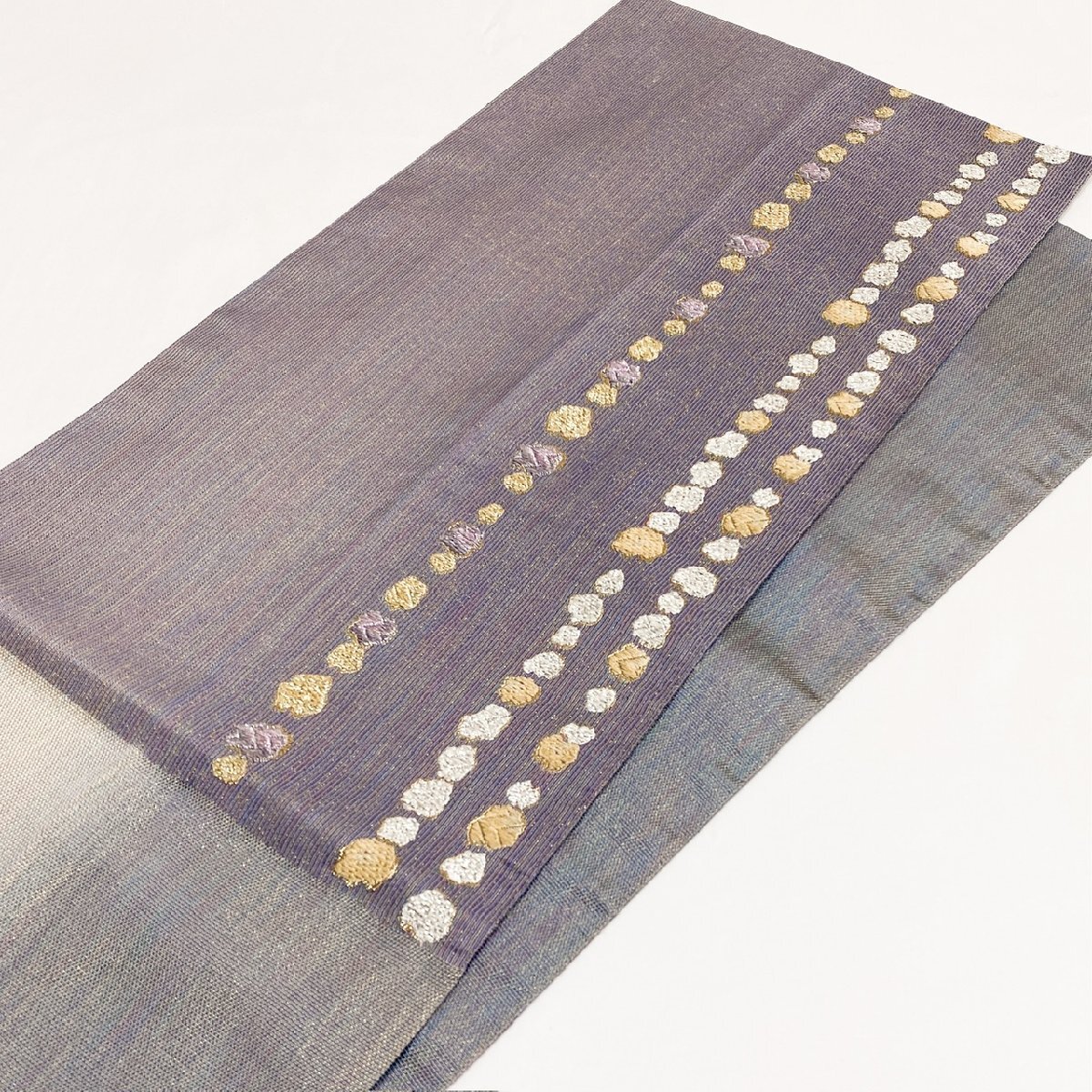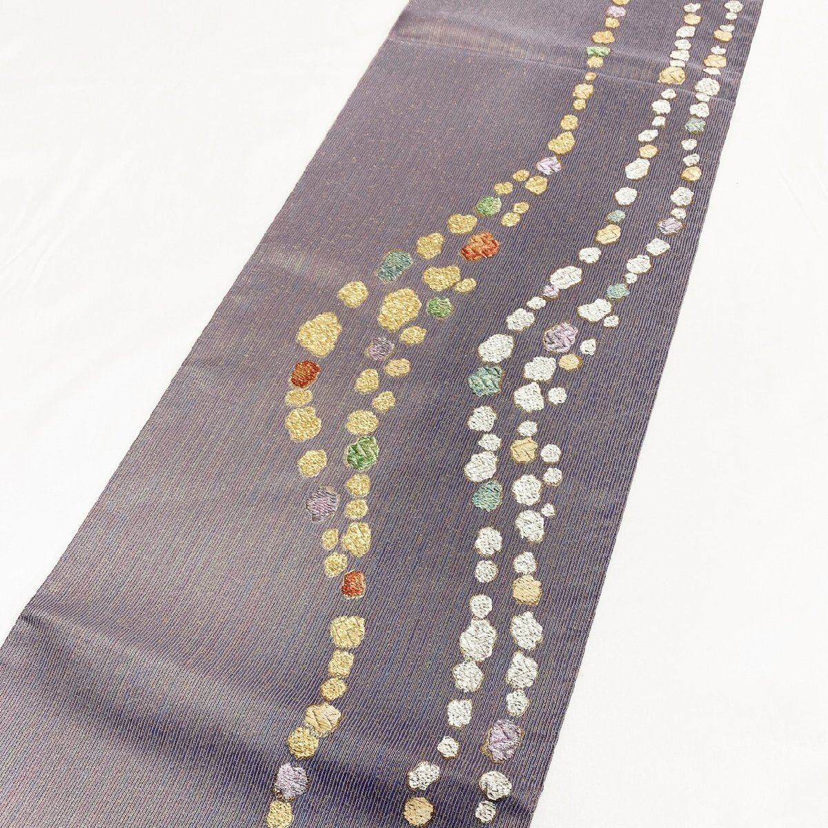 着物月花 袋帯 六通柄 正絹 金銀糸 帯芯無し仕立て パールトーン加工 ob7742