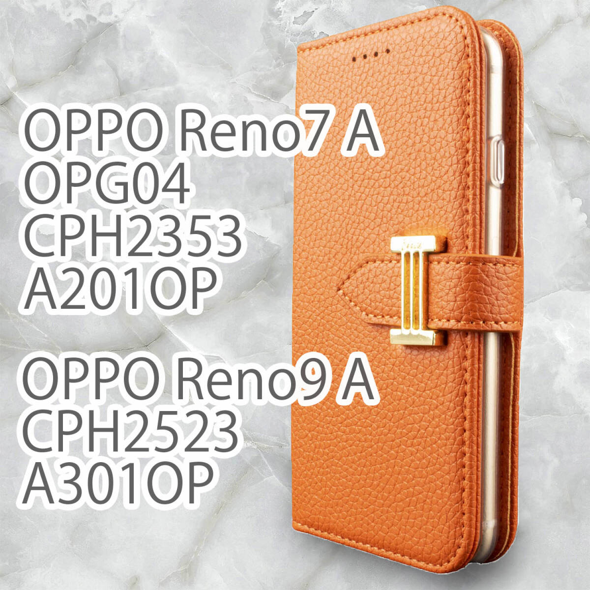 OPPO Reno9A Reno7A ケース 手帳 かわいい おしゃれ CPH2523 A301OP カバー オレンジ ベルト ストラップ ミラー 安い スマホケース 人気