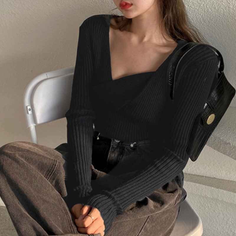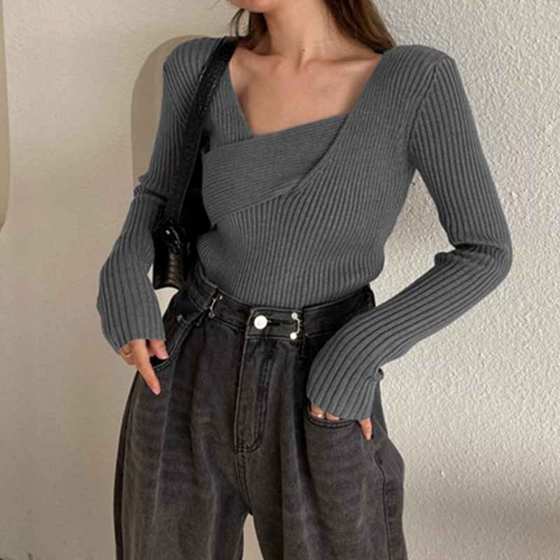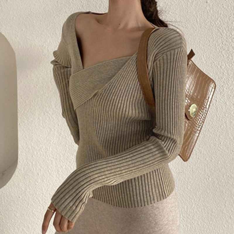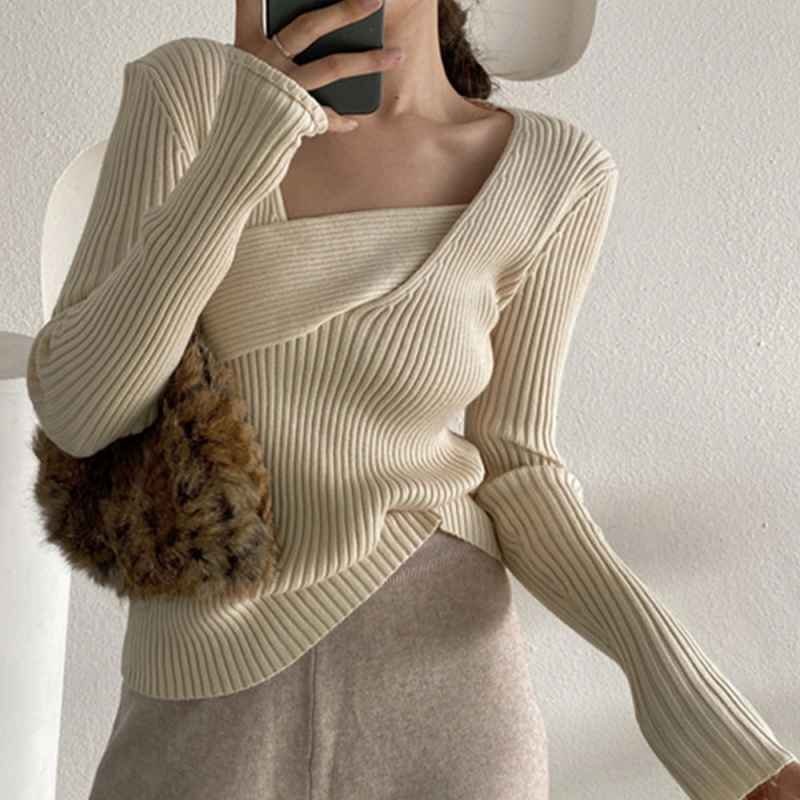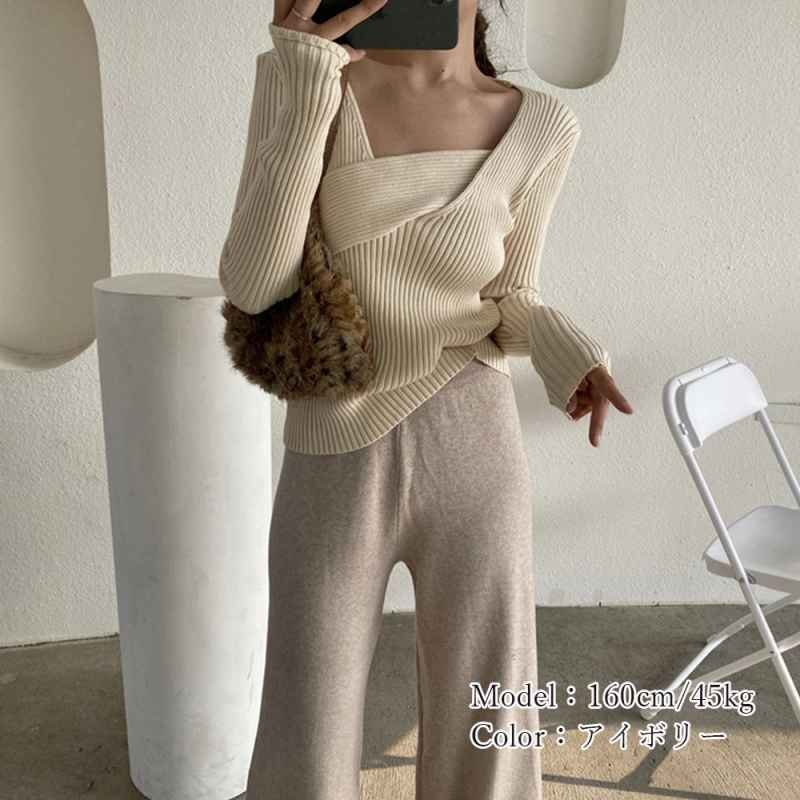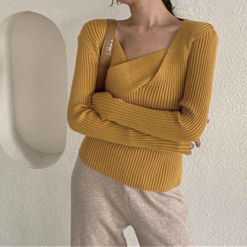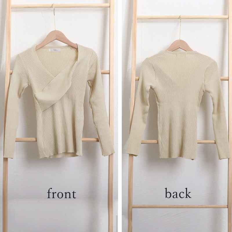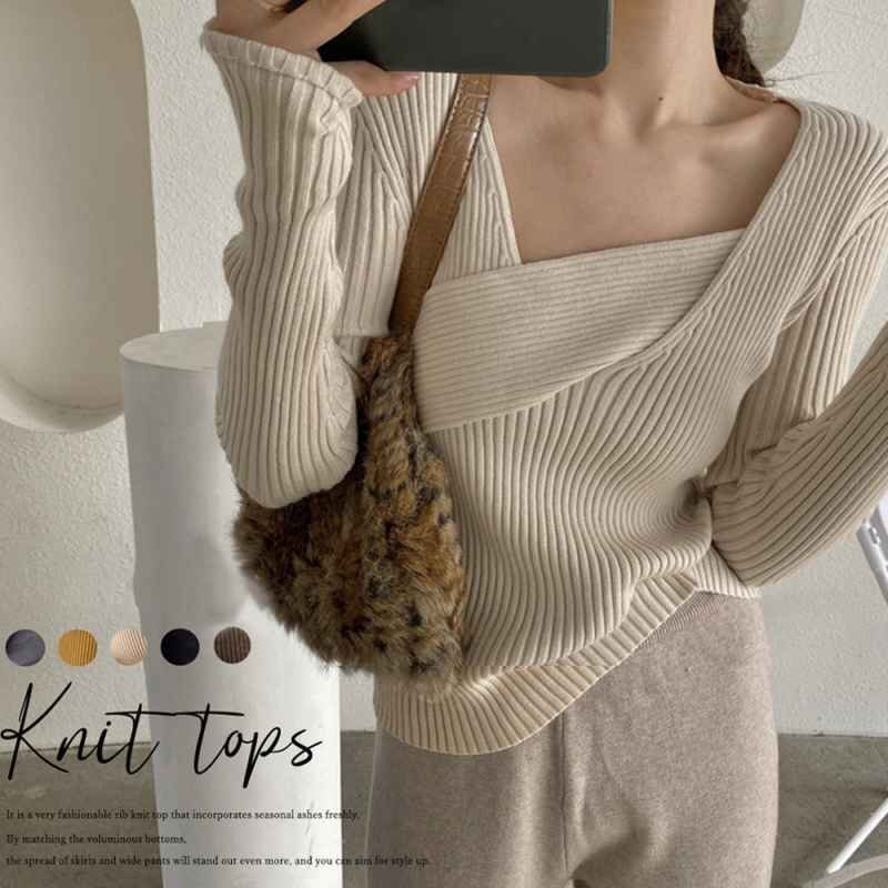 旬のアシメを新鮮に取り入れるとってもお洒落なリブニットトップス