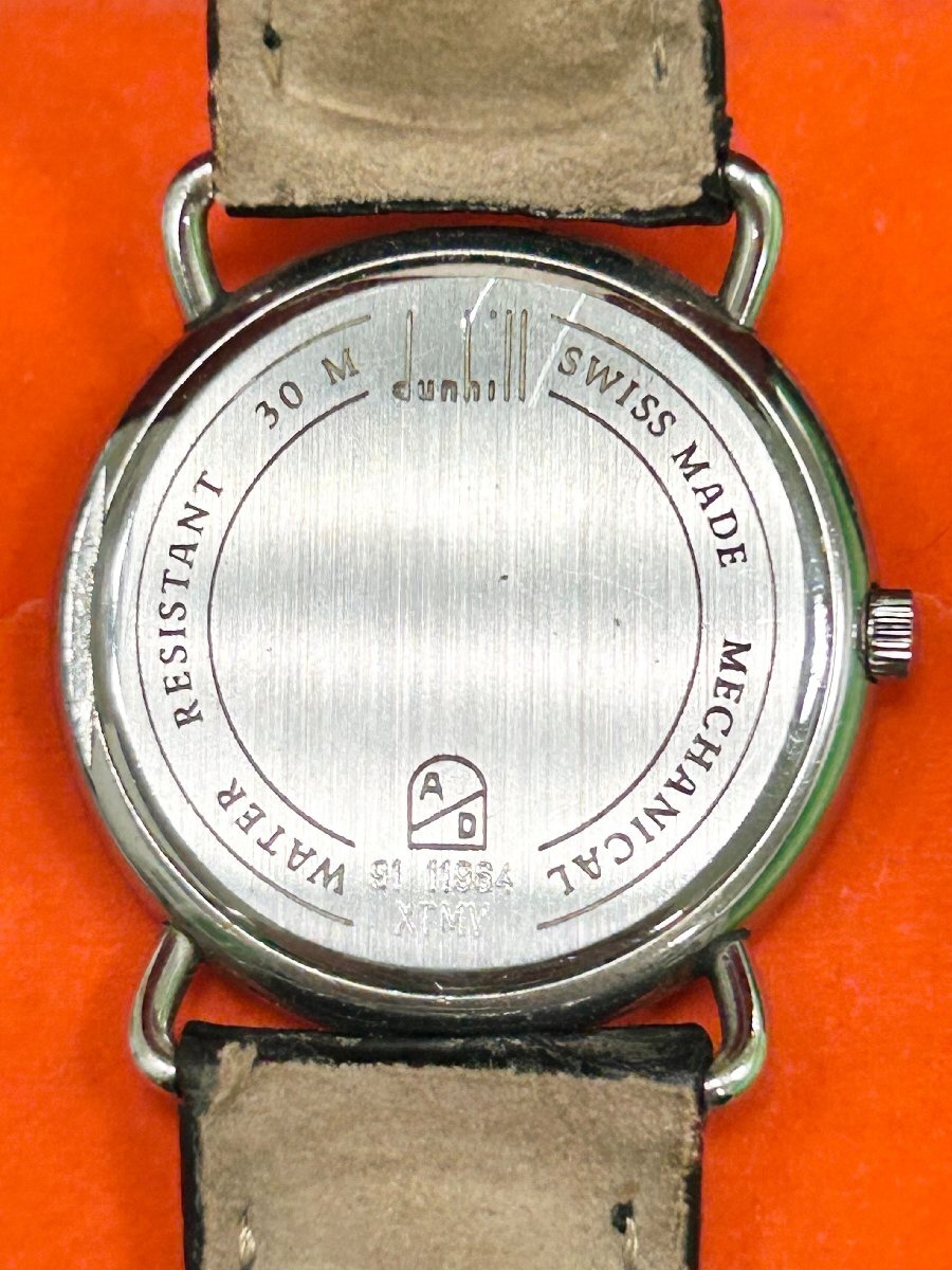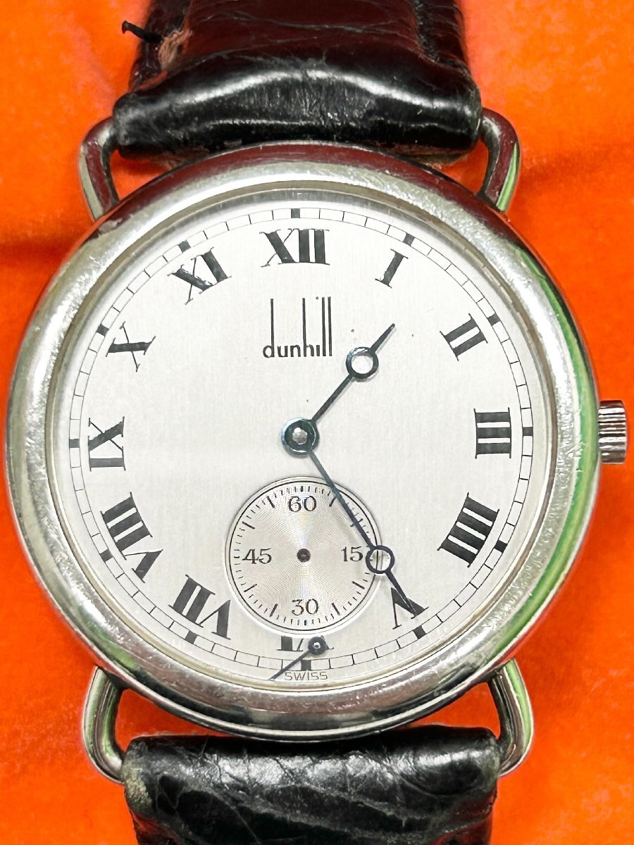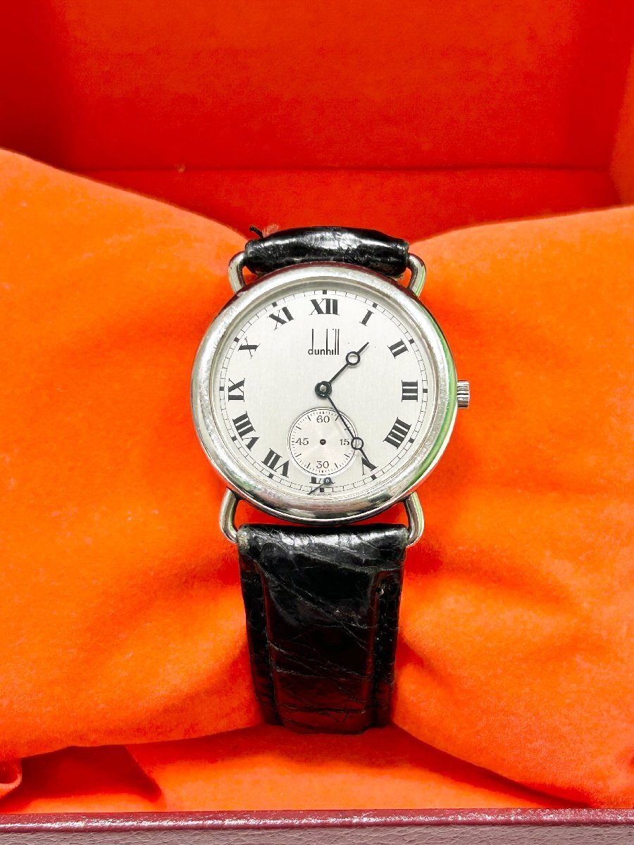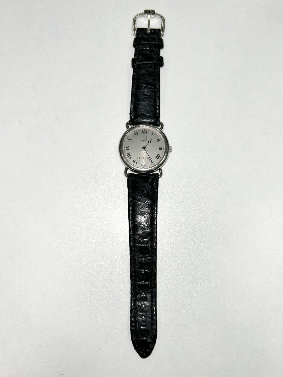 | 【J14935】dunhill ダンヒル センテナリー スモールセコンド 手巻き可動品 シルバー文字盤 スモセコ破損 ジャンク品 ベルト社外 |