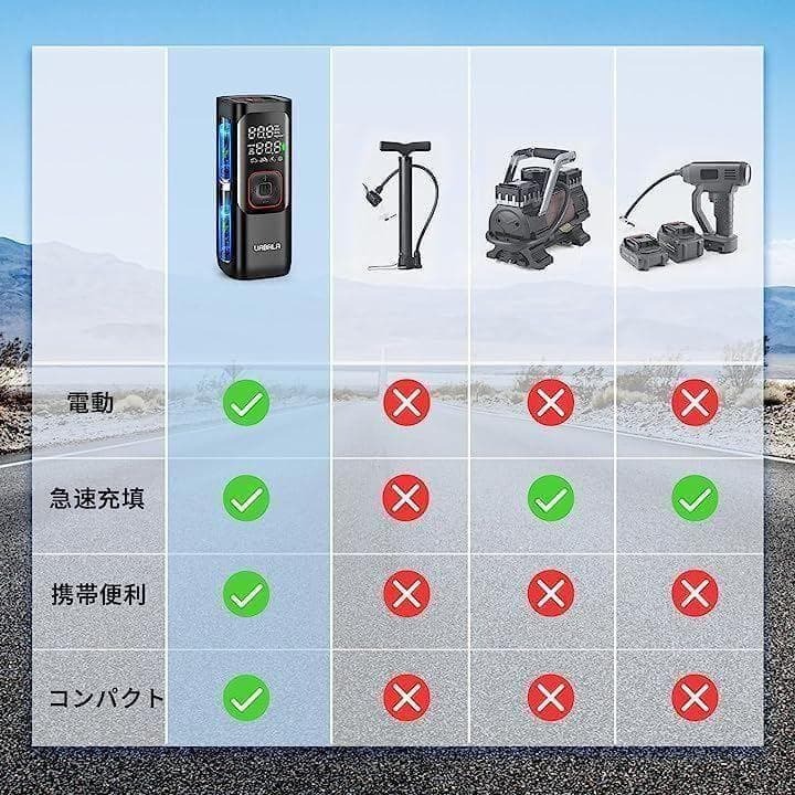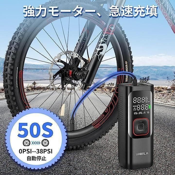 自転車タイヤなら「0 → 38 psi」を約 50秒 で充填可能。