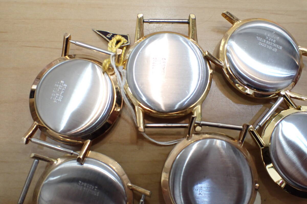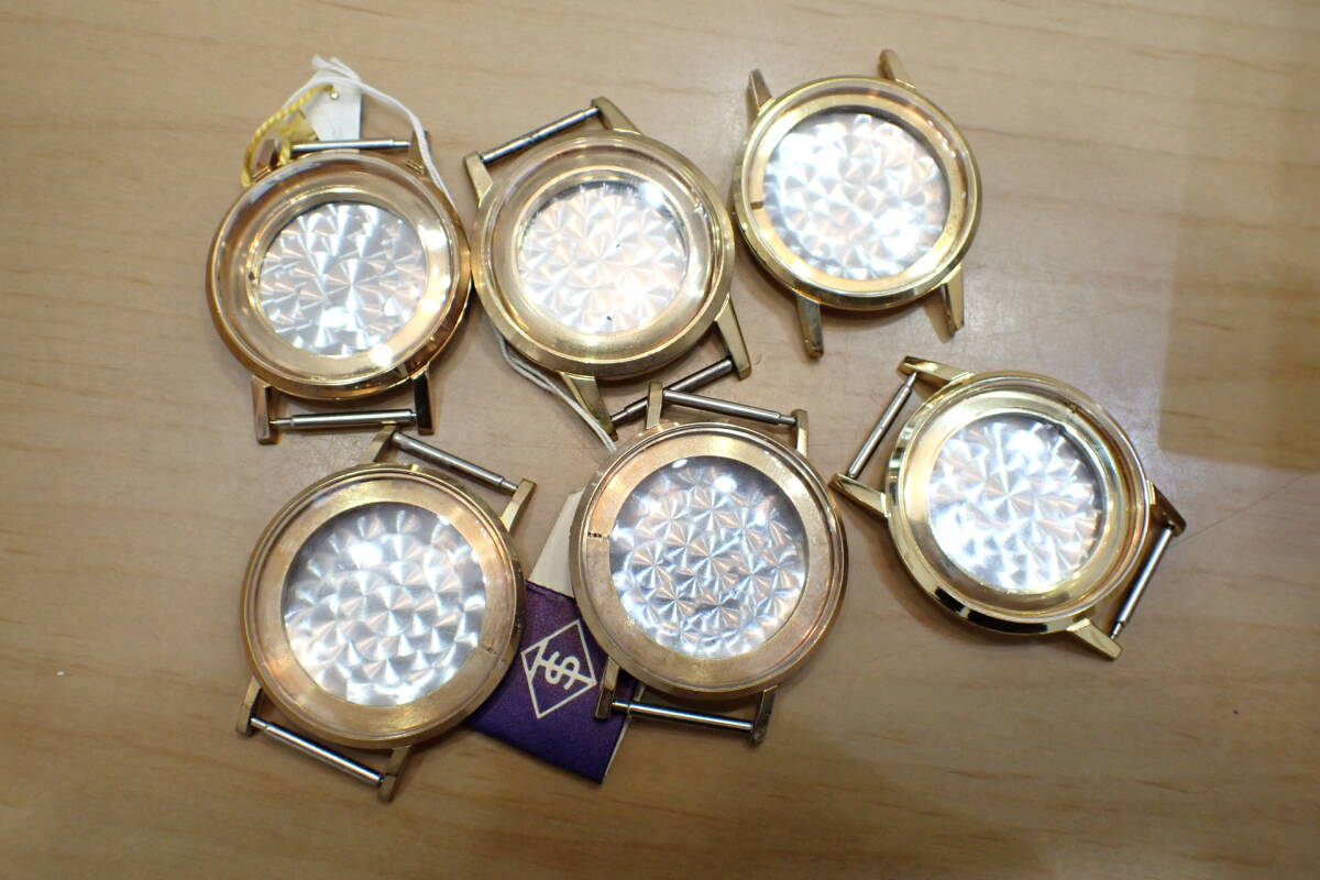 デッドストック スイス/セイコー/シチズン等に ケース/ガラス/裏蓋等 6個セットです。 デッドストック品です。 ケース、風防、裏蓋などのセットです。 ほとんどが未使用に見えますが、写真でご確認ください。 ジャンクでお願いします。 ケース径約36mm !オークション終了後、24時間以内に「お取引を始める」ボタンをクリックして、必ず取引をスタートして下さい。 取引のスタートが無ければ、削除させていただきます。 必ず厳守してください! 「新規ID」「直近で悪い評価が多い方」のトラブル(イタズラなど)が非常に多いです。 当方が、お取引に支障があると判断したID(特に新規ID)は削除します。 ●ジャンク品と記載の物の商品到着時の動作保証はありません。 ●付属品等は、写真に写っているものですべてです。 | ||||
