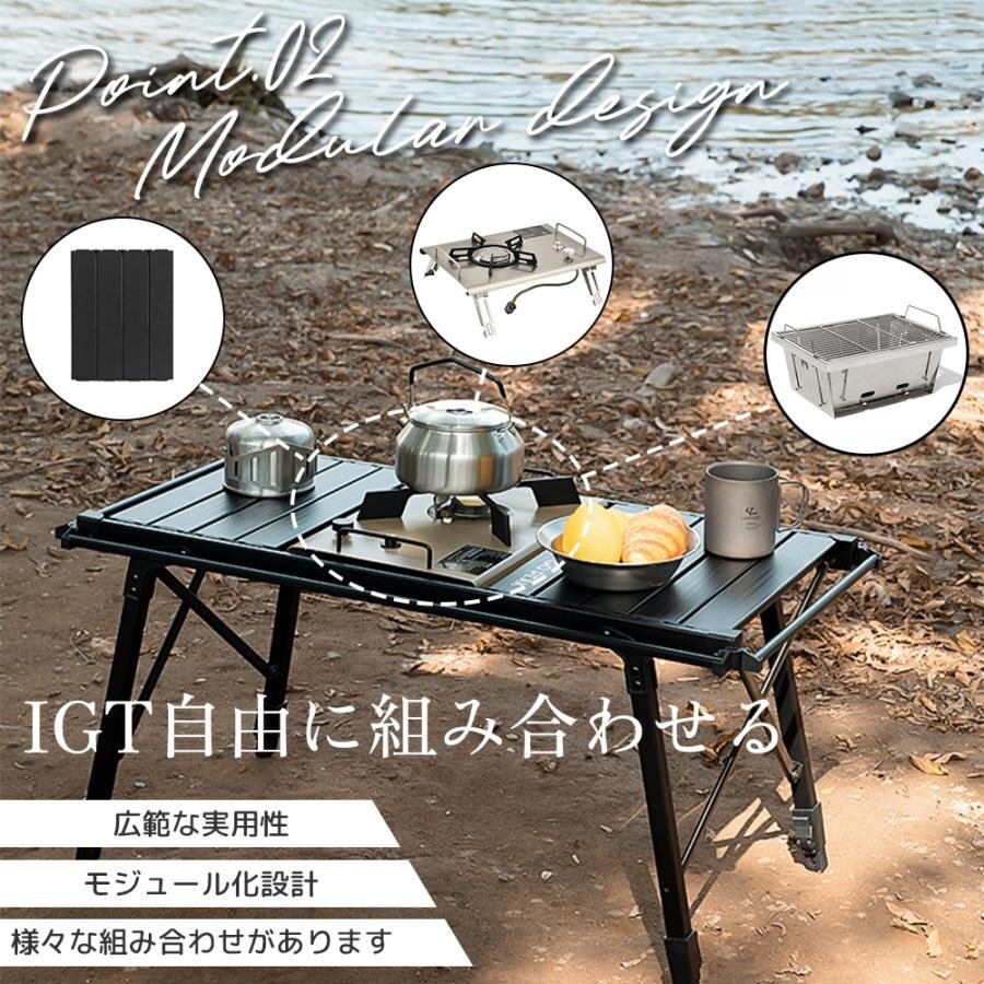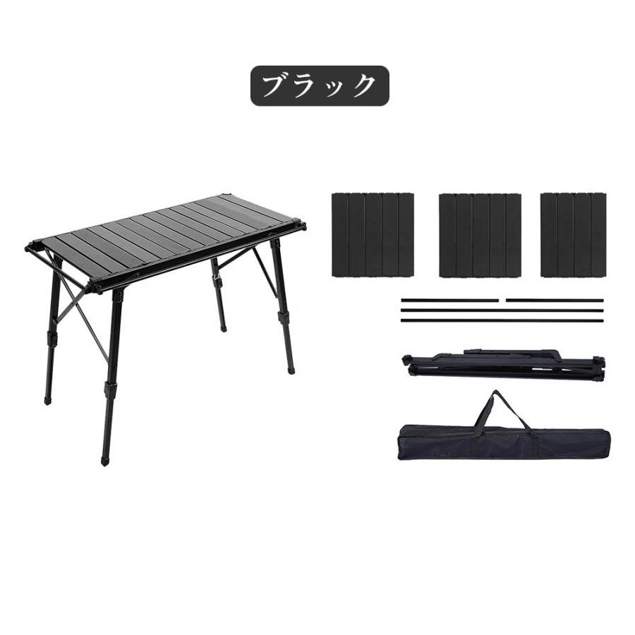 アウトドア キャンプ テーブル テーブル ロールトップ 折りたたみ 軽量 持ち運び便利 組立簡単 高さ調整可能 滑り止め コンパクト 黒