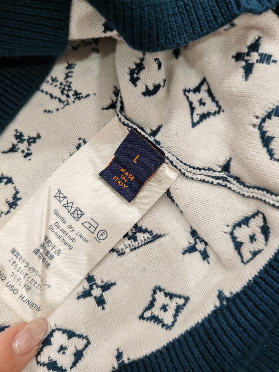 ルイヴィトン モノグラム LOUIS VUITTON ニット セーター ブルーグリーン メンズLサイズ