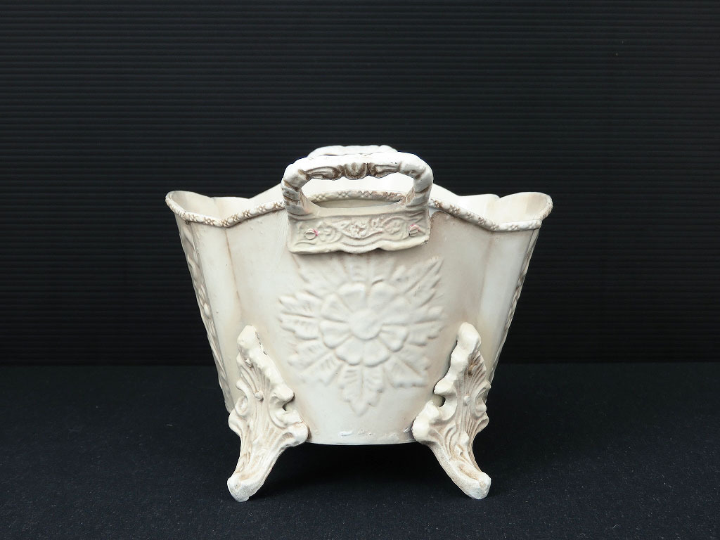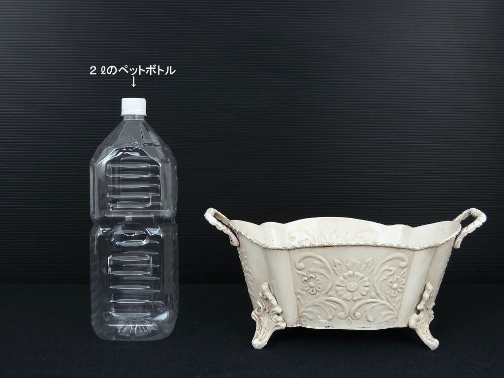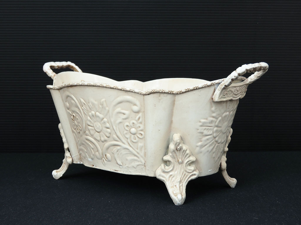 アンティーク調の装飾用植木鉢カバーです。風合いが良かったのでサンプル品として購入しました。店内でディスプレイしておりましたので、新品ではありません。