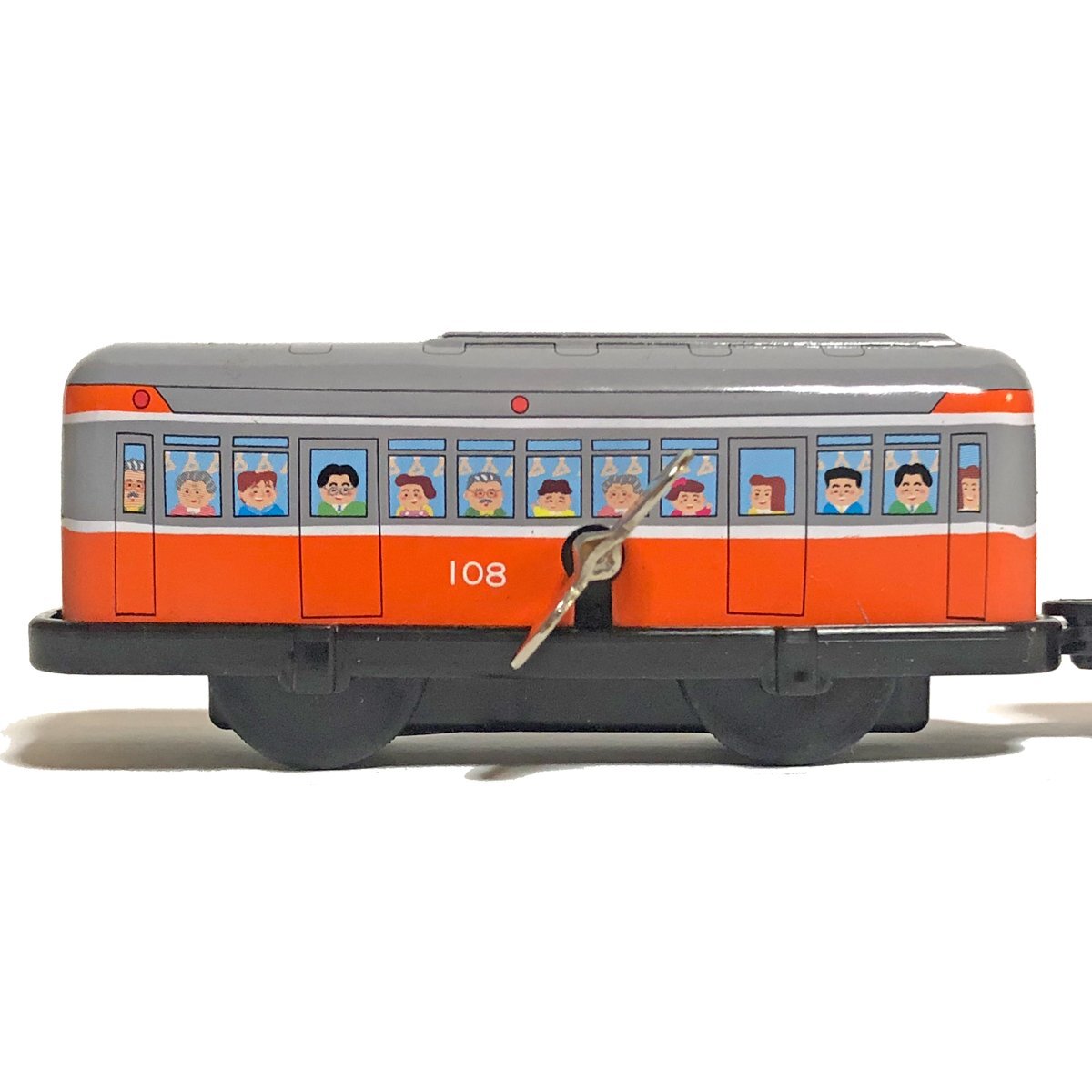 その歴史あるモデルは "ブリキ玩具を作らせたらこの人"と言われる東京葛飾 三幸製作所の柳澤さんが作ったモデルで、 ブリキならではの質感、発色は健在ですが、シャーシ、および車輪等腰下は軽いプラスチック成型となります。 窓からのぞく乗客たちも老若男女満席状態で、昭和レトロな雰囲気を醸し出しています。