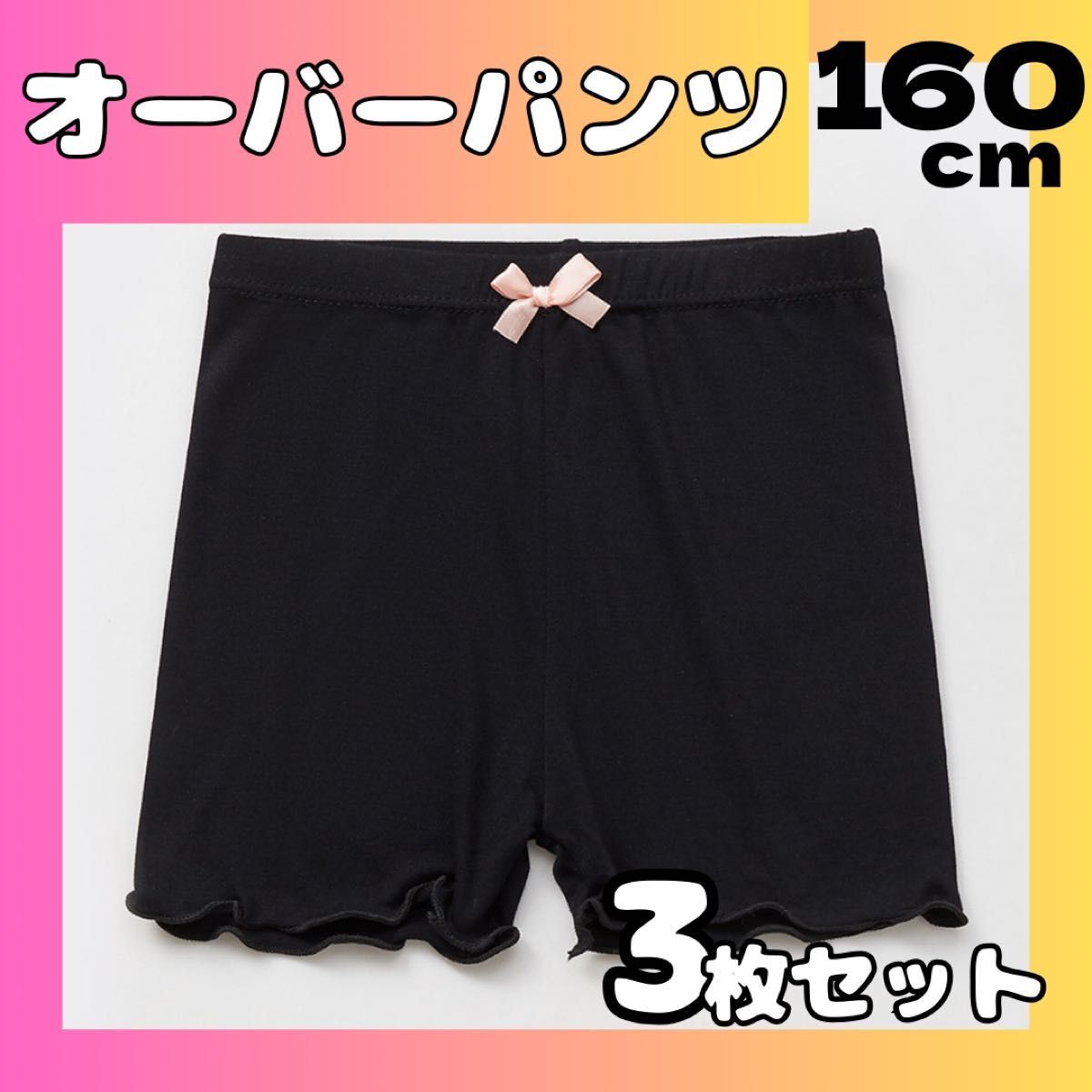 【3枚セット】160cm オーバーパンツ 子供用 一部丈 スパッツ インナーパンツ キッズ 女の子 スカート 通園 通学
