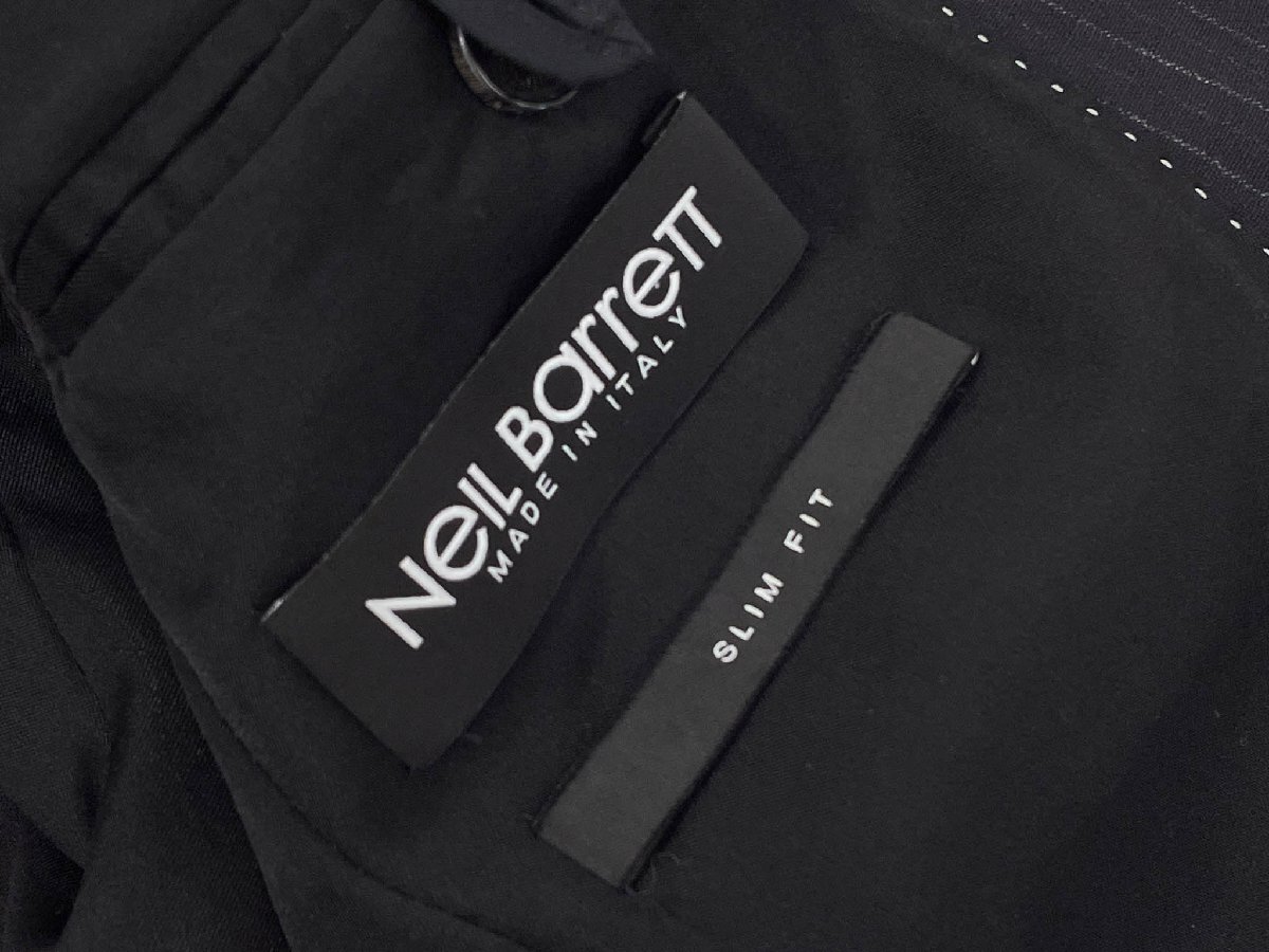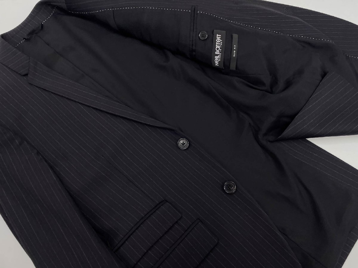 超美品【ニールバレット Neil Barrett】BAB45 7112 Slim fit シングル2ボタン ストライプ柄 スーツ (メンズ) 44 黒系 伊製◇35RMS2994◇
