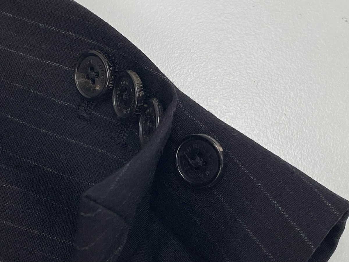 ・袖は本切羽、ボタンホールは飾りで、第一ボタンのみ外れたデザインです