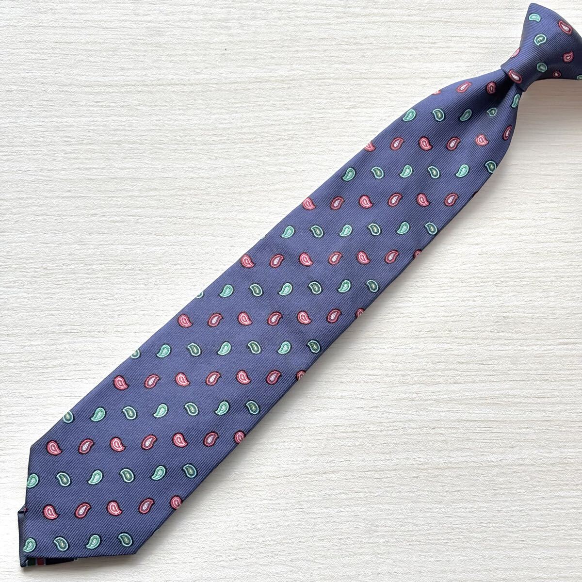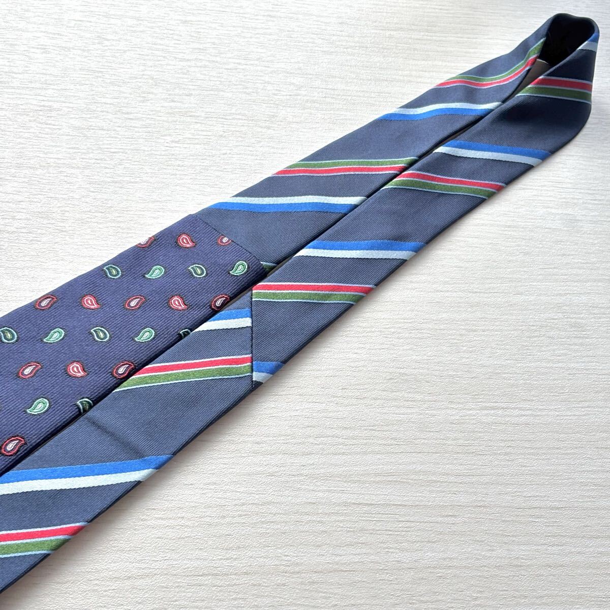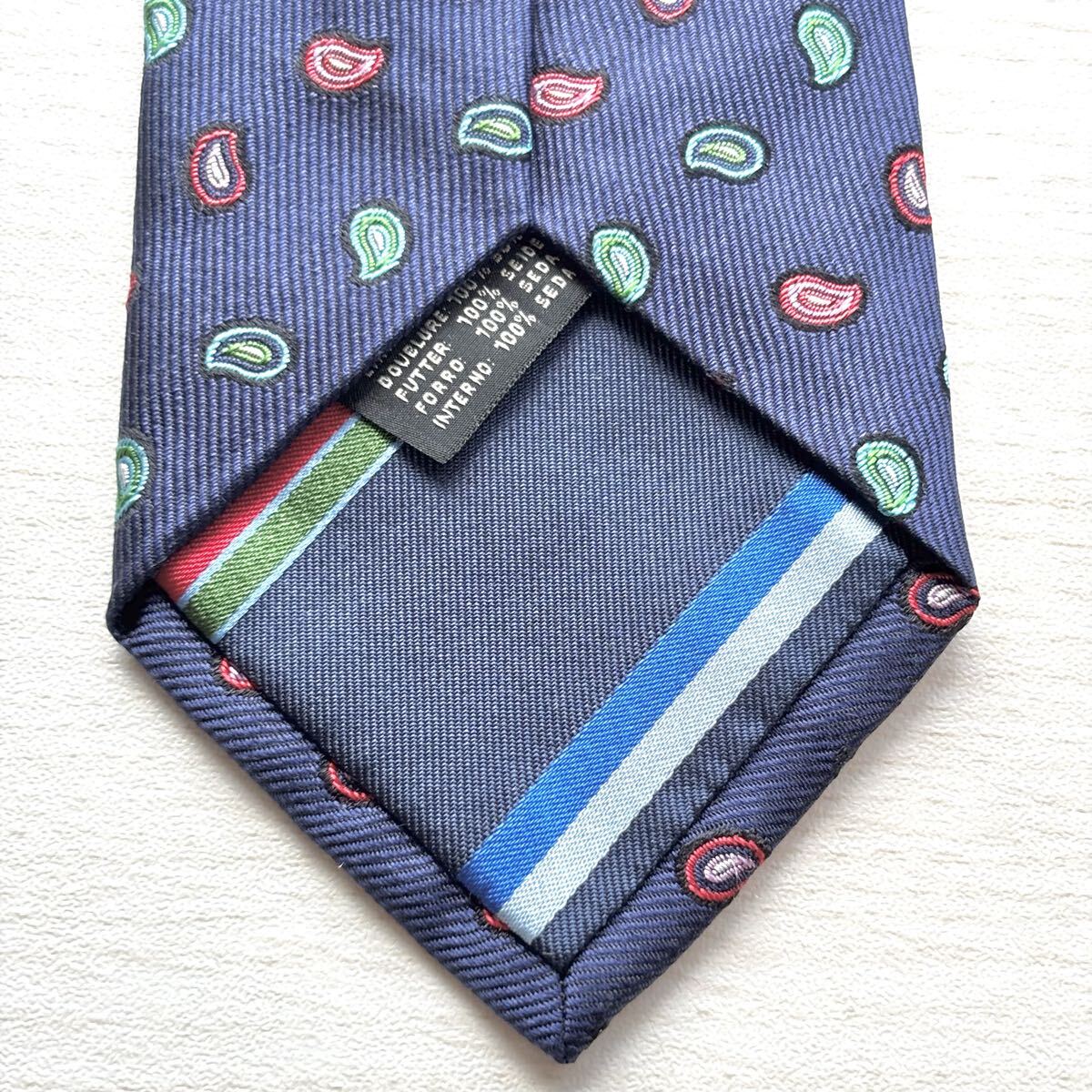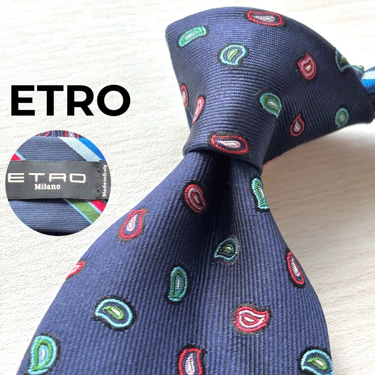 大剣はペイズリー柄、小剣はストライプ柄のETRO エトロのシルクネクタイ。ジャガード織りの美品の状態。