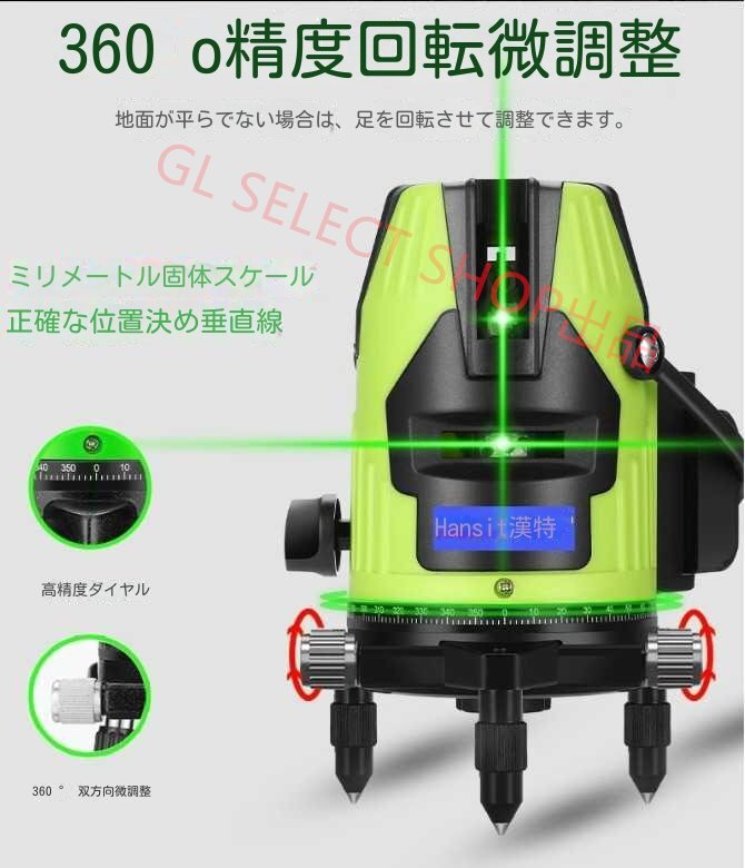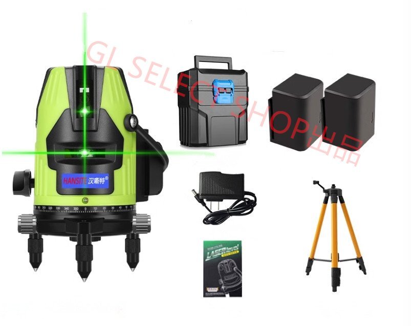プロ級です 5ライン6点 グリーンレーザー墨出し器/墨出し機/測定器/水平器/自動補正機能/ 高輝度 /高精度/1.0M三脚付き二つの電池T148