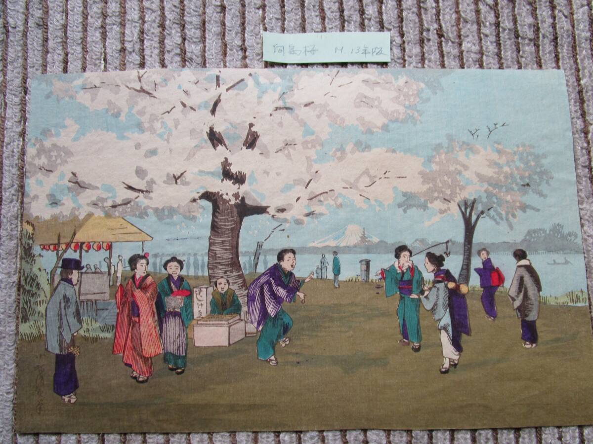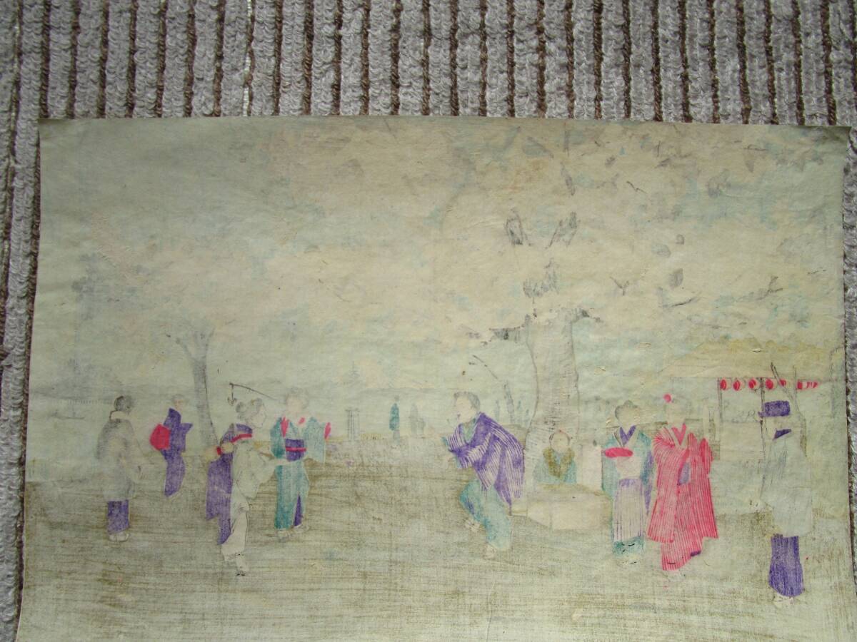小林清親の向島桜,真作です。マージンを切ってありますので大きさは31.5×20.5cmです。表裏ともにきれいだと思いますが古いものですので写真をよく見て気になる方は入札を控えてください。送料は保証はありませんが普通郵便でよければ180円です。追跡可能な特定記録付きで390円です。もし新作出ないと判断した場合は返品可能です。