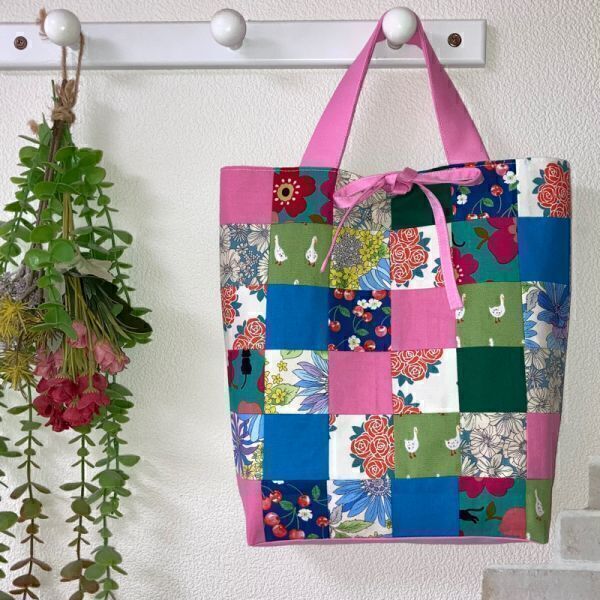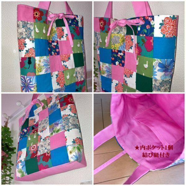 《 れい¥れいのハンドメイド生活 》 ◇ご覧いただきありがとうございます◇ ☆くったりカラフルトート☆パッチワーク アヒル柄や花柄などの ピンク系パッチワークのくったりトートバッグ ショッピングバッグ・エコバッグに是非どうぞ 横上部32㎝ たて32㎝ マチ底24㎝×8㎝ 持ち手30㎝ 内ポケット1個 結び紐付き 重さ 約140g 《 素材 》 ☆表地・内布 綿100% ★生地の特性上ネップ・織り糸がある場合がございます事を予めご了承下さい 《 お支払い方法 》