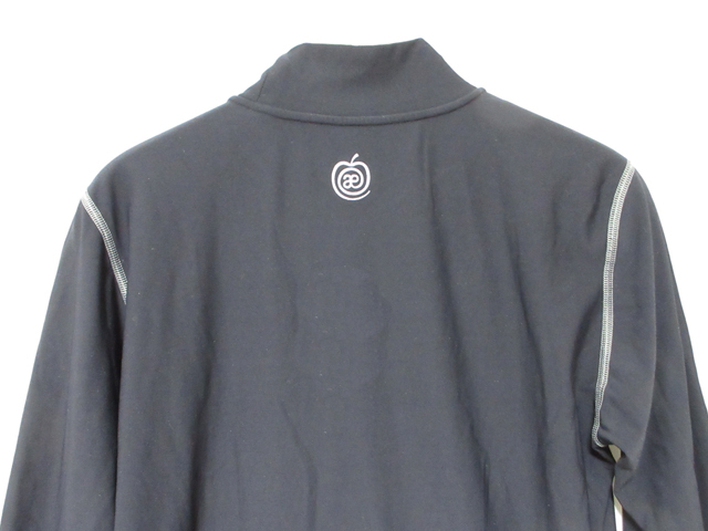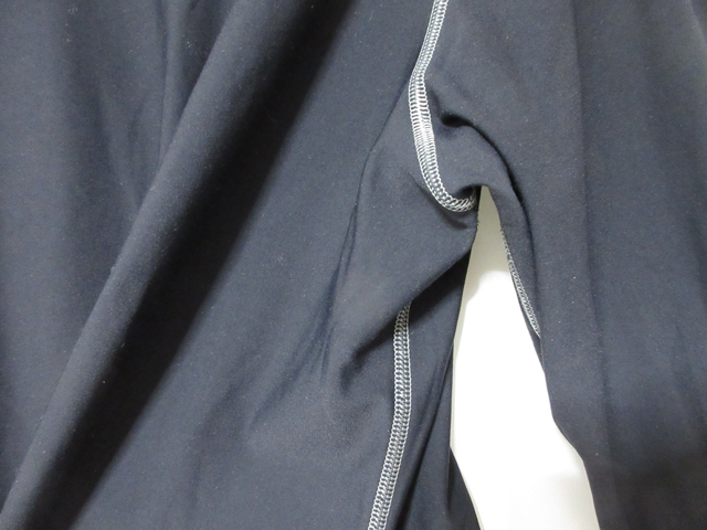 表示サイズ:LL 丈65cm 肩幅38.5㎝ 袖丈60cm 身幅45㎝ 伸縮生地なので寸法は大体です 素材:ナイロン80% ポリウレタン20% 色:ブラック 裏が少し起毛しています パーツのハギ部分は白糸で外ロックの飾り縫い ★写真に薄白い〇が映り込んでるかと思いますが デジカメで濃色撮影時の光線の加減です 汚れ等ではありません |