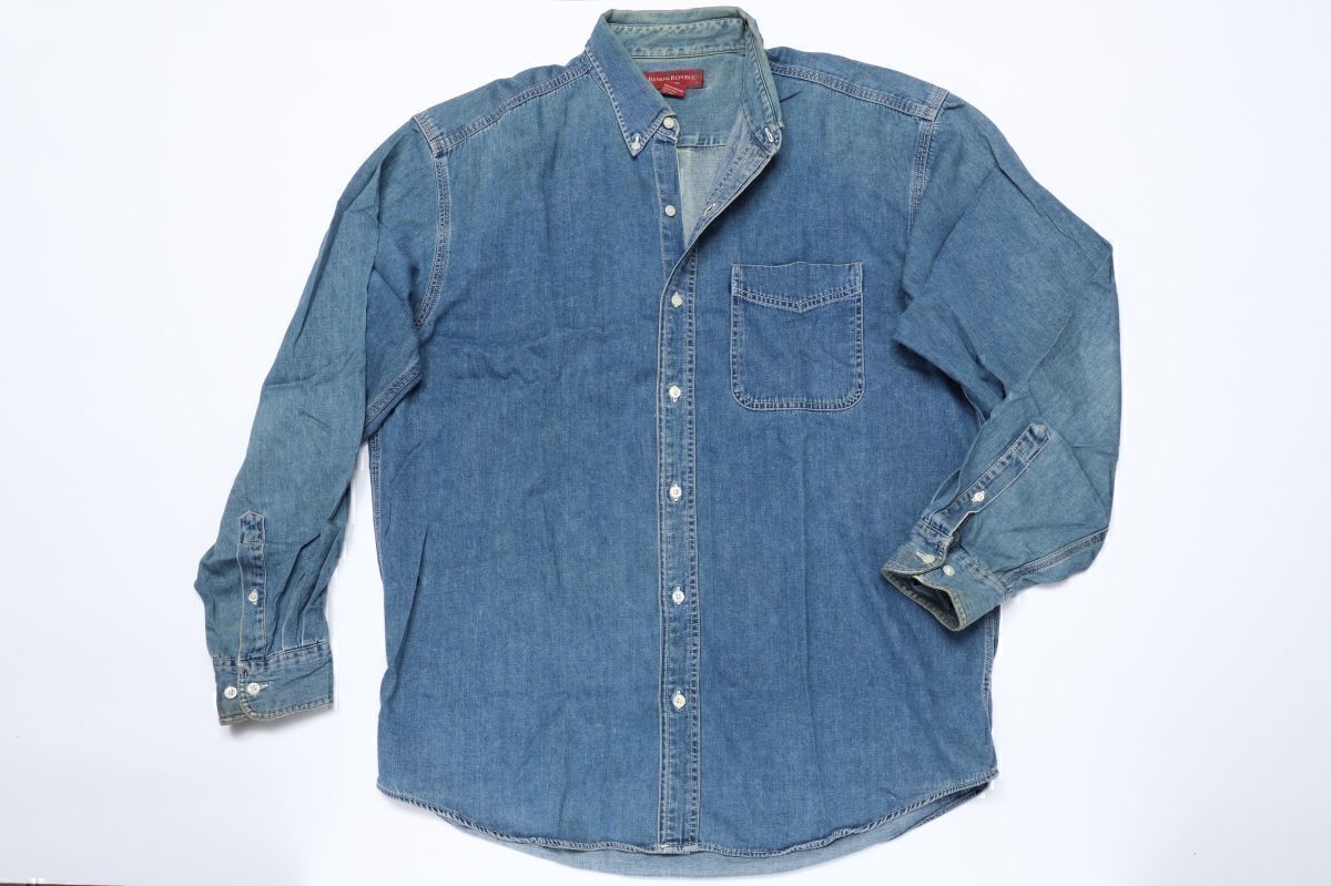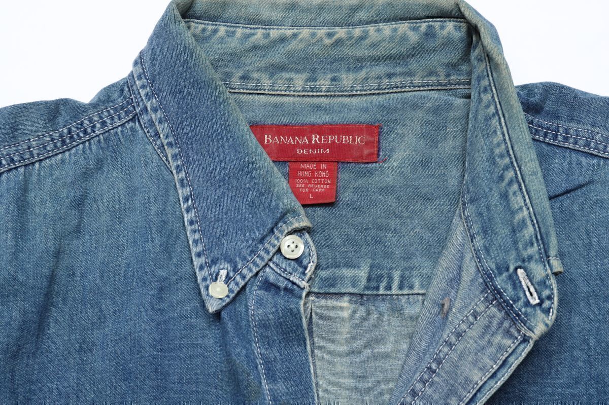 即決★中古品★ BANANA REPUBLIC バナナリパブリック★ 長袖デニムシャツ★Lサイズオーバーサイズデニム【本物保証】ウォッシュドブルー青