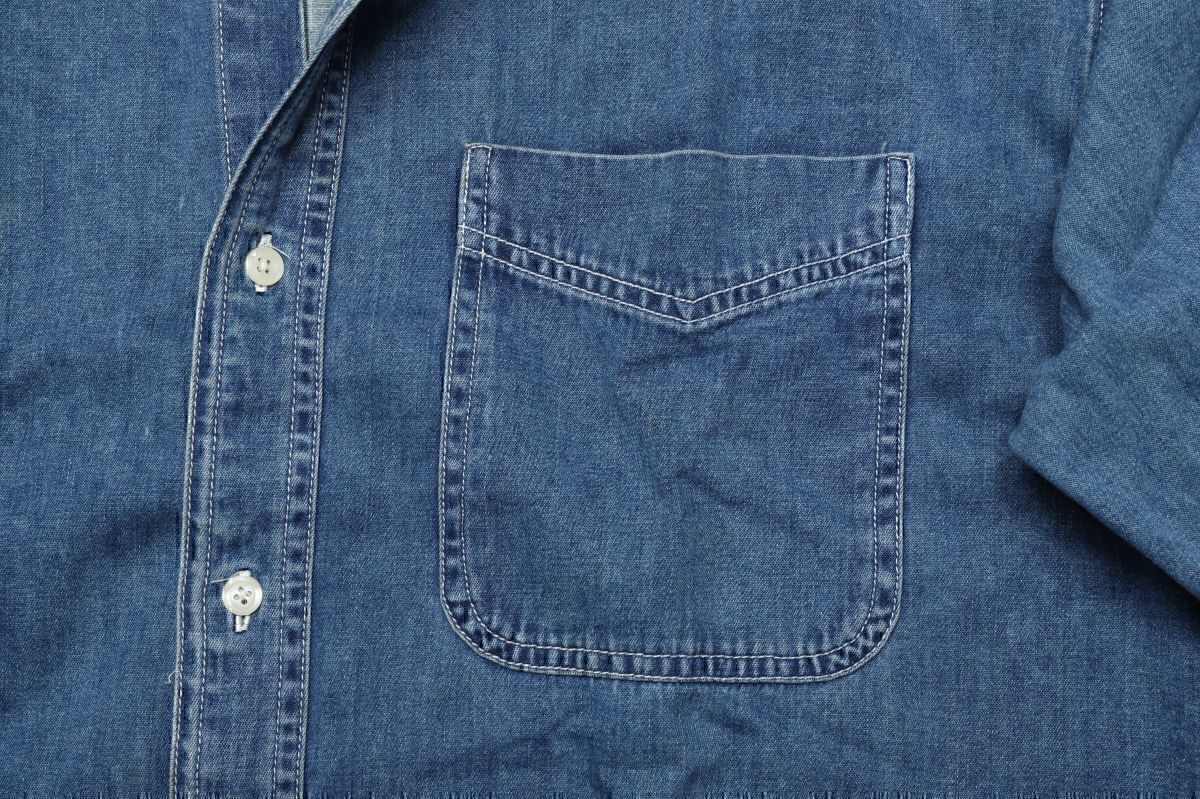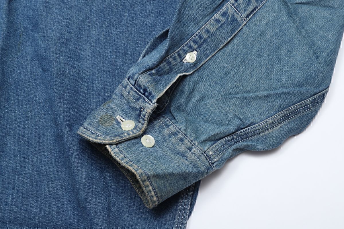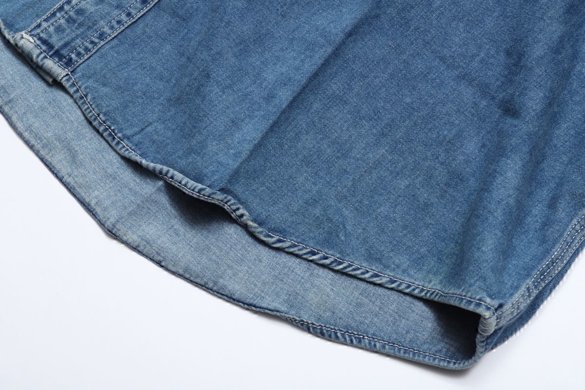 商品説明:オーバーサイズの長袖デニムシャツ。厚手のしっかりとした生地です。アウター、ジャケットとしてご使用いただけます。