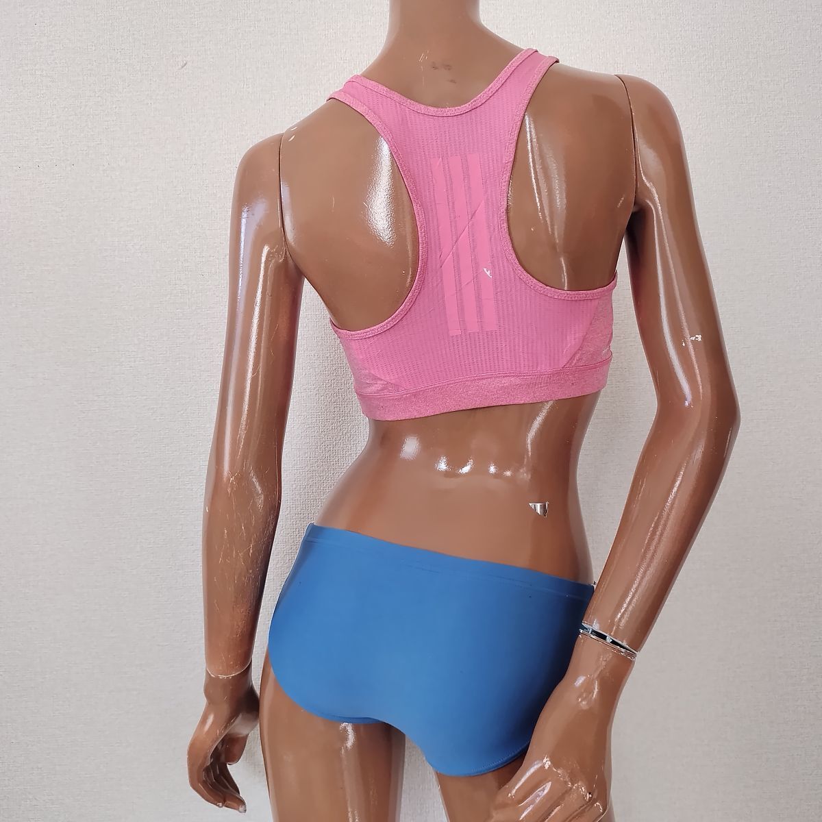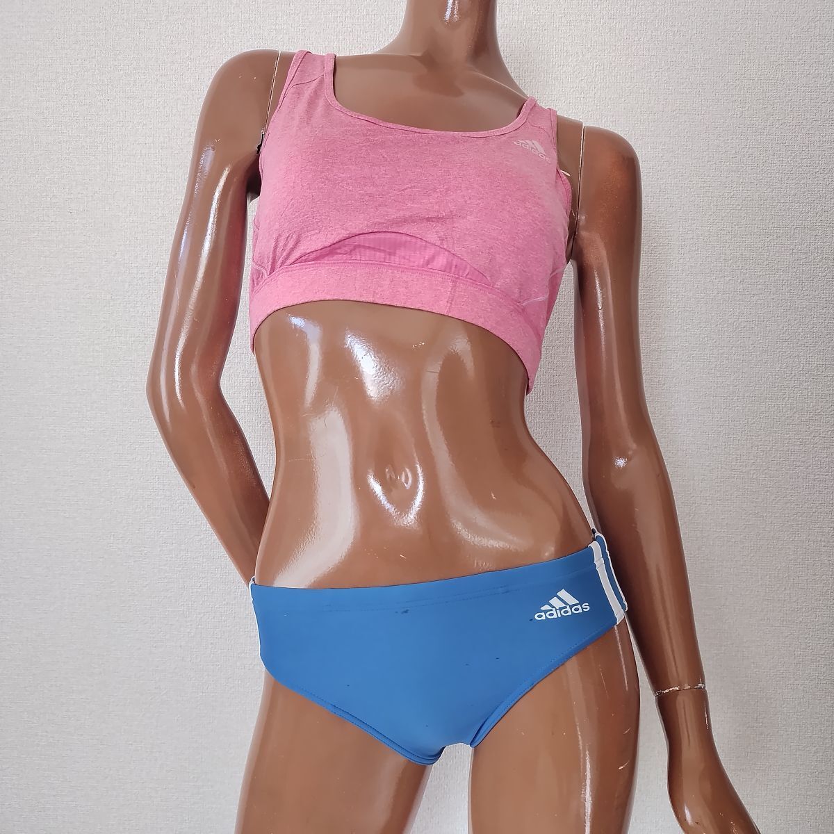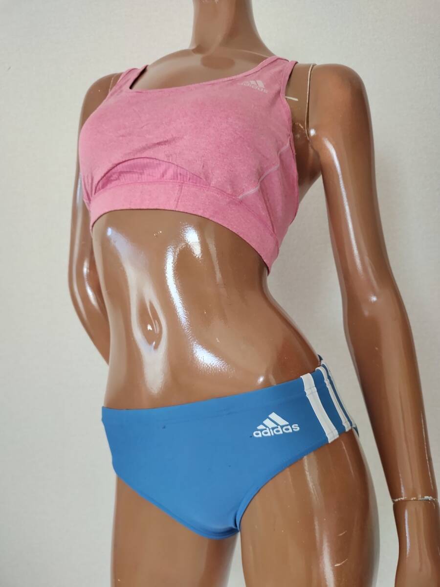 39*アディダスadidas女子陸上レーシングトップ(Mサイズ)+パンツ(Mサイズ程度)★光沢ピンク青ブルー★