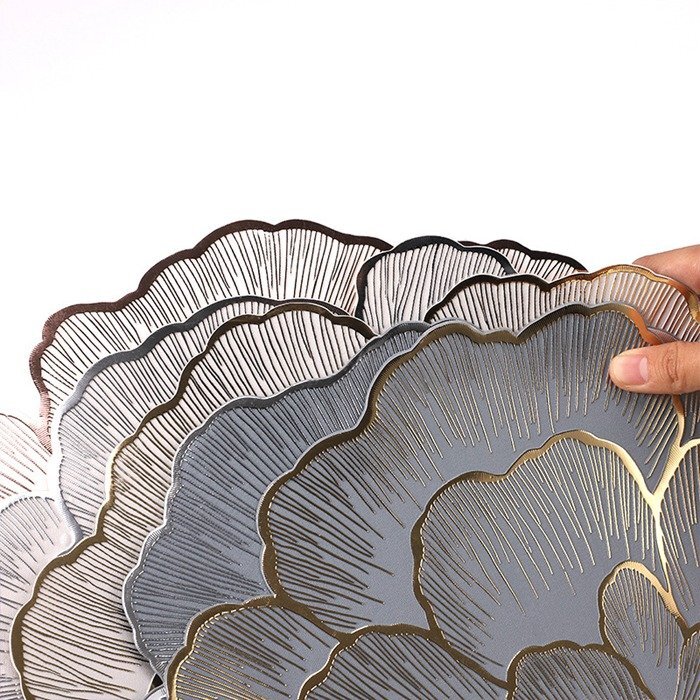 食器の下からのぞくバラのデザインは食卓のよいアクセントになります。