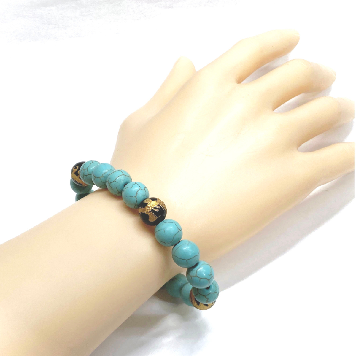 10mm 四神獣金彫オニキス×ターコイズ パワーストーン ブレスレット天然石 運気上昇 開運 金運 恋愛運 青龍 白虎 玄武 朱雀 #2 ☆
