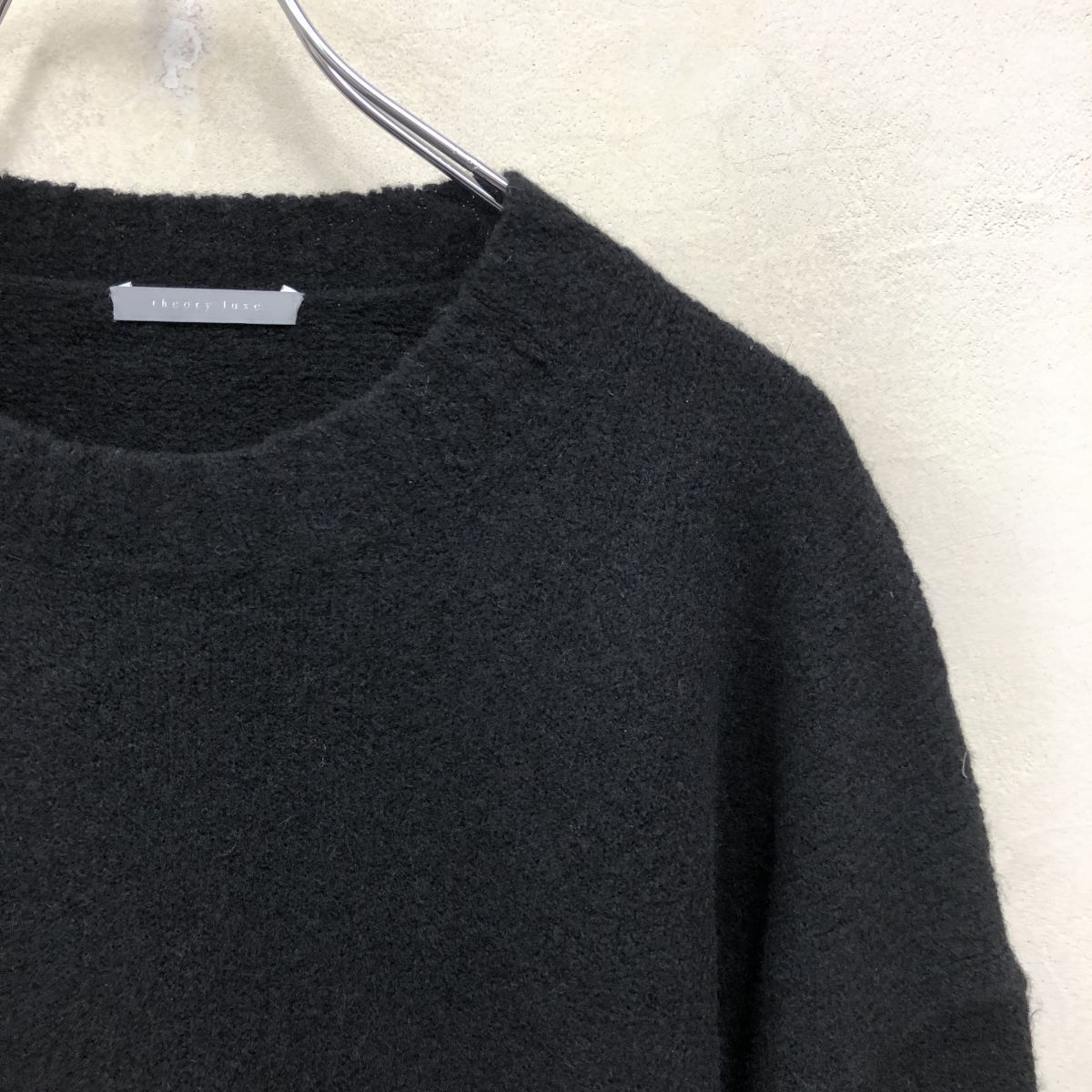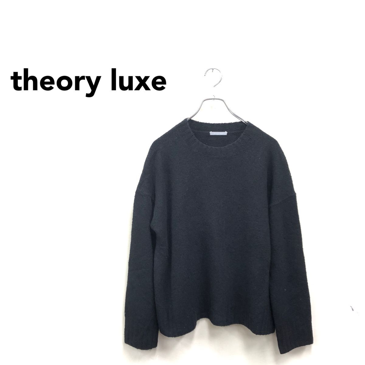 2N2181-U◆theory luxe セオリーリュクス カシミヤブレンドクルーネックニットプルオーバー セーター 無地 ビジネス◆size38.黒 ブラック