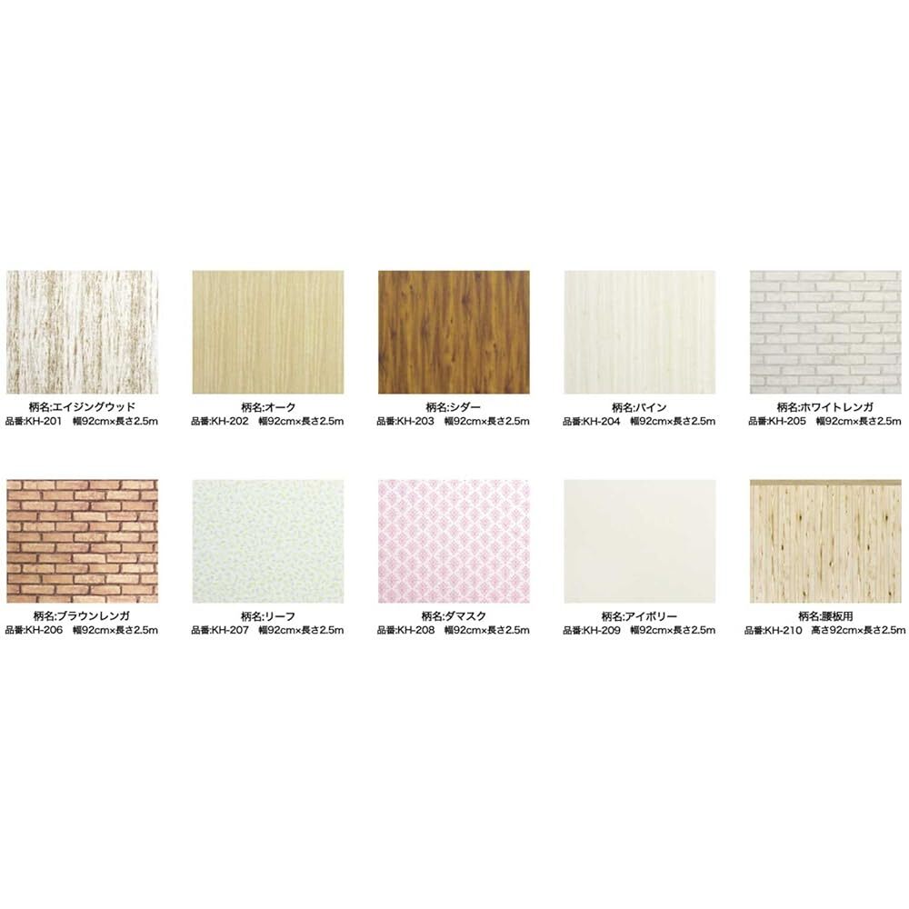 「商品情報」【用途】ビニルカベ紙(屋内用途)※水を吸いこまない水拭きができるビニルカベ紙に限ります。※水拭きでとれないホコリ、汚れ、タバコのヤニや油汚れなどの付着したカベ紙には、充分接着しないことがあります。※劣化が激しいカベ紙や、めくれかかったり、はがれかかっているカベ紙には充分接着しないことがあります。※特殊な表面処理をしたカベ紙には、充分接着しないことがあります。※砂壁調の凹凸の激しいカベ紙には充分接着しないことがあります。貼れない面・場所:紙カベ紙、布カベ紙、古いカベ紙をはがした面、化粧合板、ベニヤ板、塗装面、しっくい壁、セッコウボード、コンクリート、モルタル、カビがはえた面、浴室などの水のかかる場所、結露する場所、火気の近く、屋外、天井【商品仕様】規格:幅92cm×長さ2.5m材質:塩化ビニル樹脂、紙【注意事項】下地のカベ紙の凹凸の程度により、本品の表面に下地の凹凸が現れることがあります。下地のカベ紙が濃い色柄の場合は、下地の色が透けて見えることがあります。柄によっては柄合わせができない場合があります。「主な仕様」のりが