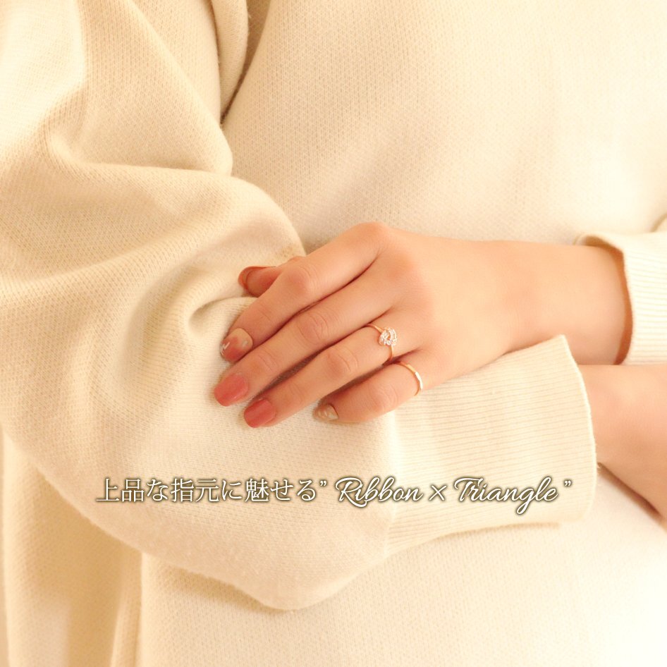 7号~11号 調整可能リング/ 新品 指輪 K18GP フリーサイズ トライアングル リボン りぼん 18金 ピンクゴールド レディース プレゼント 女性