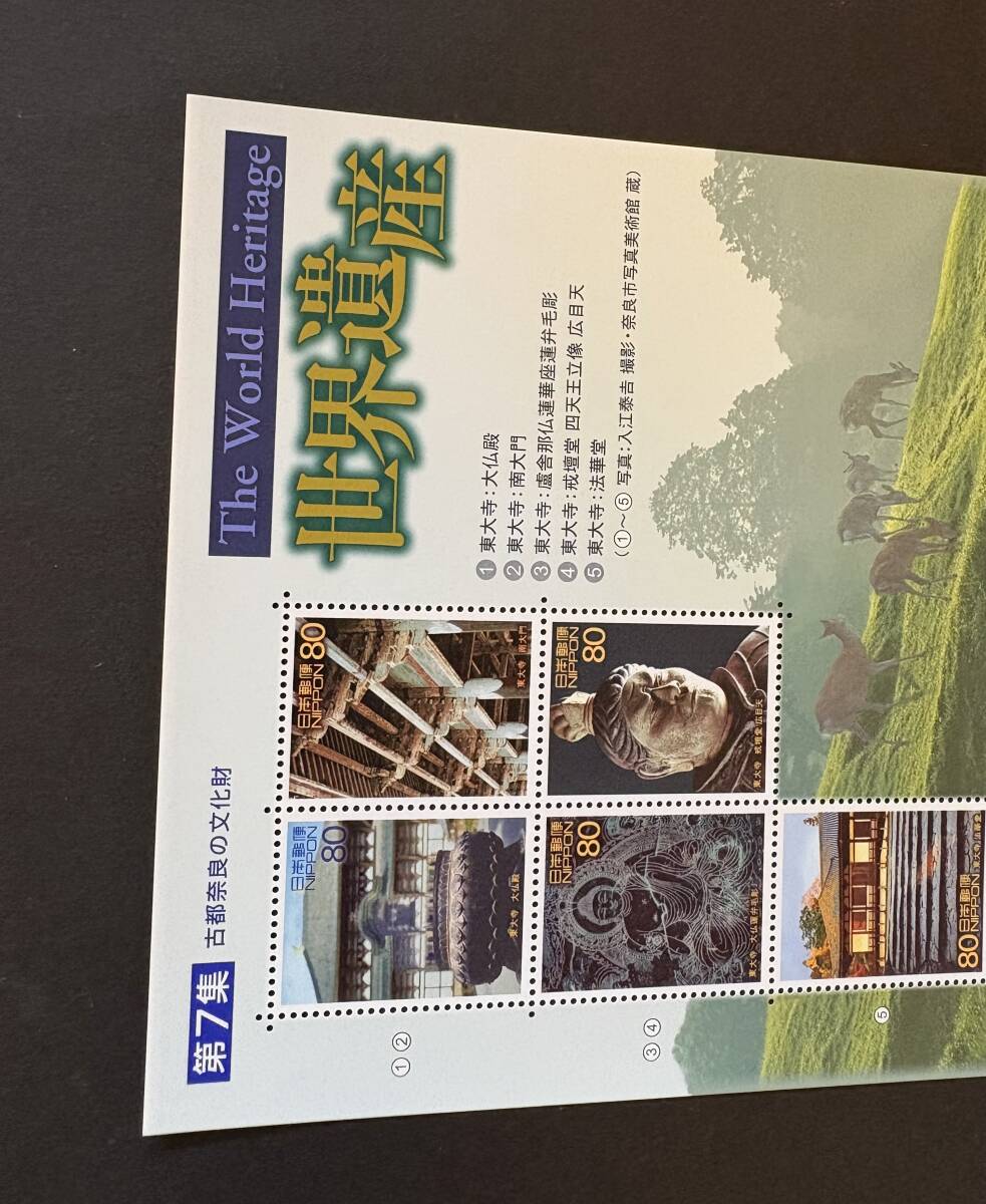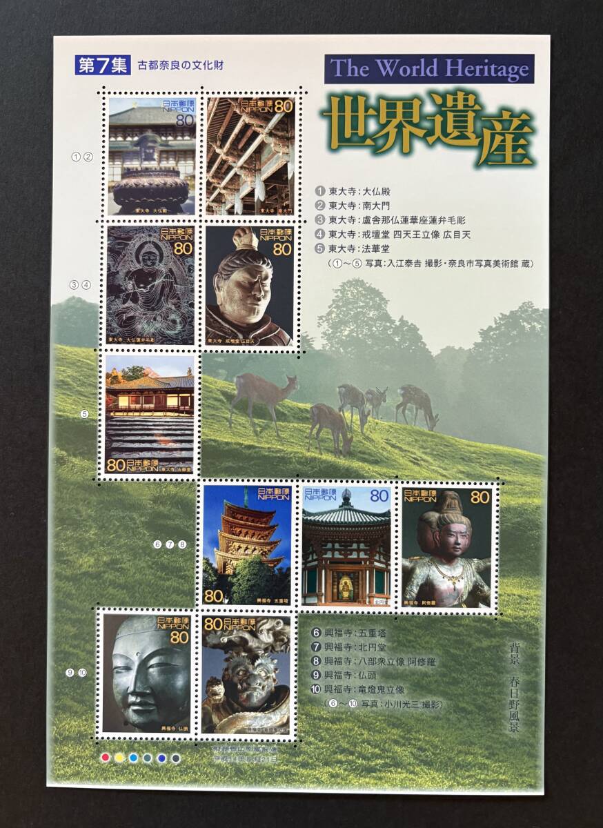★記念切手  第2次世界遺産シリーズ 第7集 古都奈良の文化財 1シート 未使用