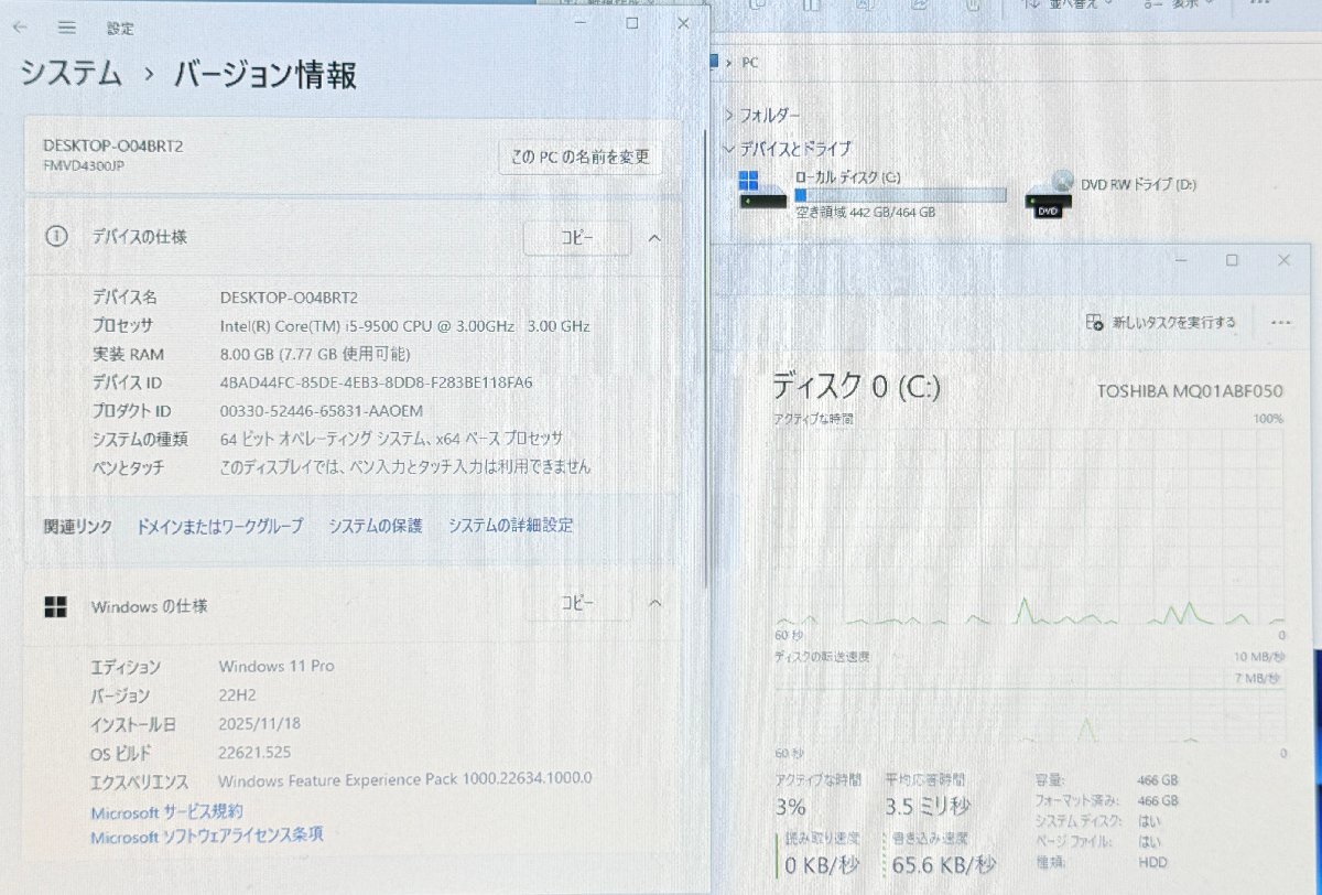 <BR>  OS:Windows11Pro 64bit(クリーンインストール)