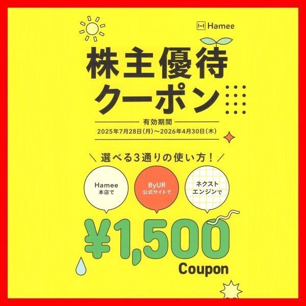 Hamee 株主優待券 1500円オフ 1枚です。
