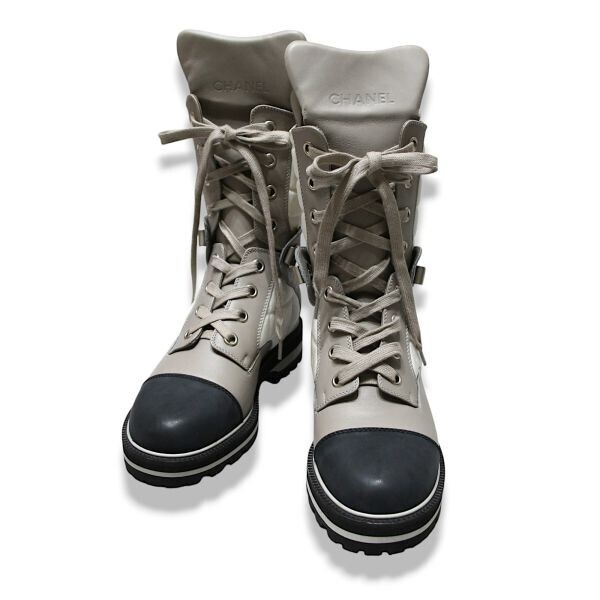 | 新品 未使用品 ◆超レア◆ 正規品 2000 CHANEL シャネル ココマーク CC ロゴ チョコバー レースアップ ブーツ シューズ 靴 37 イタリア製 | ||||