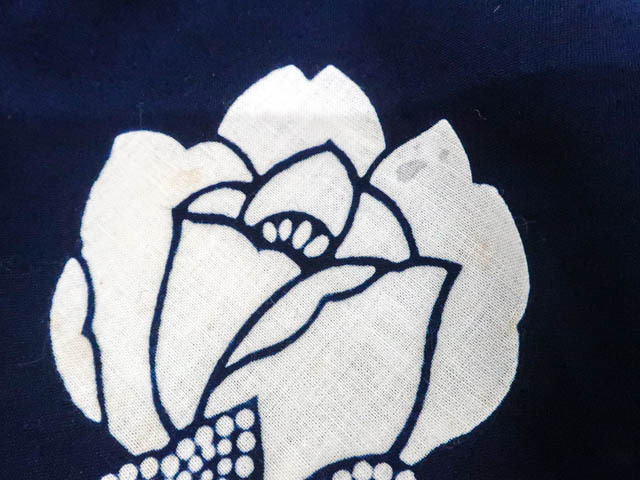 リサイクル商品のため、絵柄に黄ばみ、絵柄の所々や肩当て、居敷当てにシミがございますが着用可能なお品です。 肩当て、居敷当て付きです。 地色は紺です。 1枚目の画像が近いお色かと思われます。 素材は綿です。 |