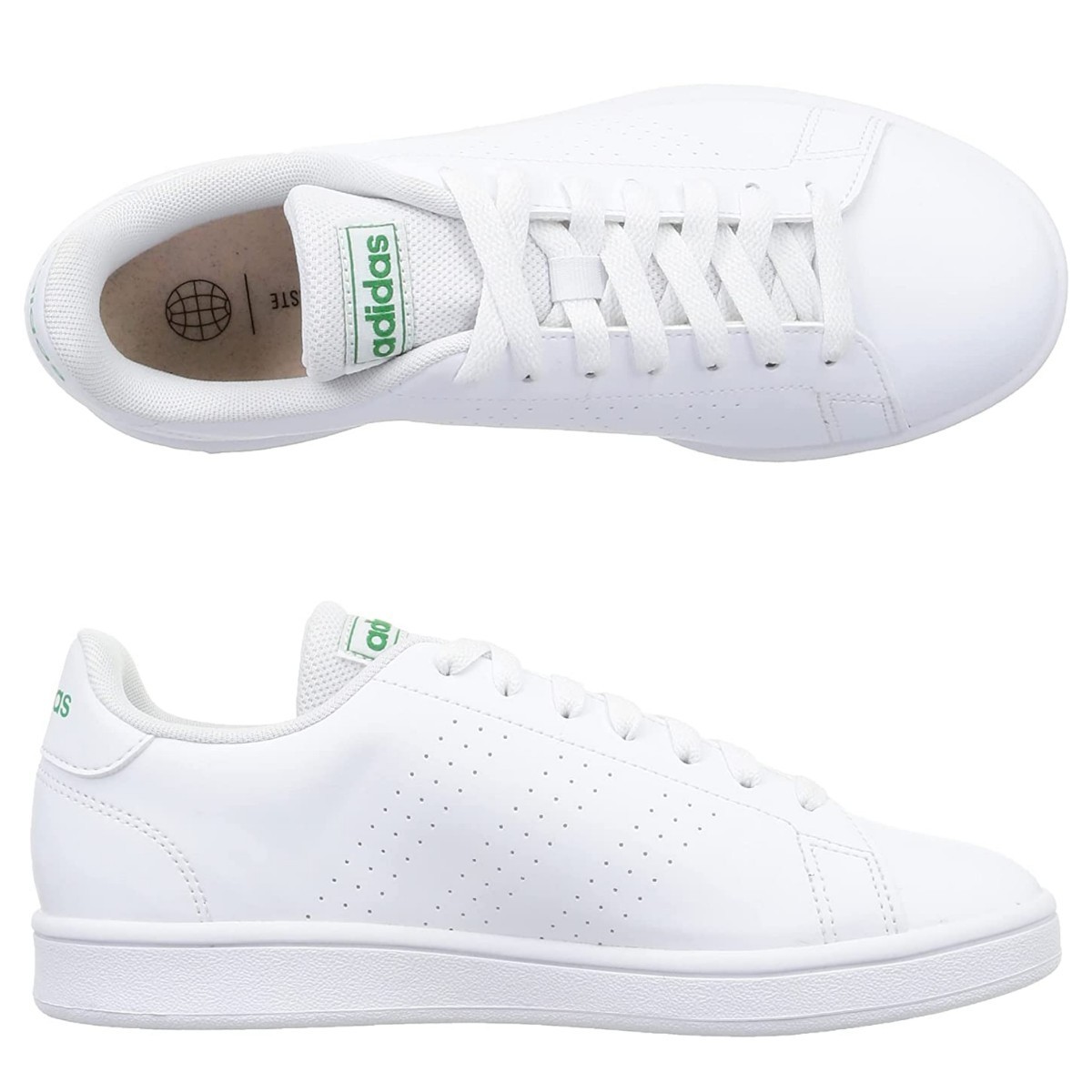 カジュアルなフォルムに滑らかなラバーアウトソールを合わせた、デイリースタイルに最適なADVANCOURT 【アドバンコート】。レザー風素材を用いたアッパーに、パンチングのスリーストライプスを配している。また、配色のアディダスロゴが際立つポイント。