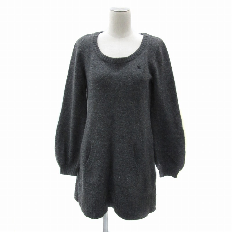 バーバリーブルーレーベル BURBERRY BLUE LABEL チュニック ニット 長袖 ラウンドネック 38 M グレー /YS4 ■GY53 レディース