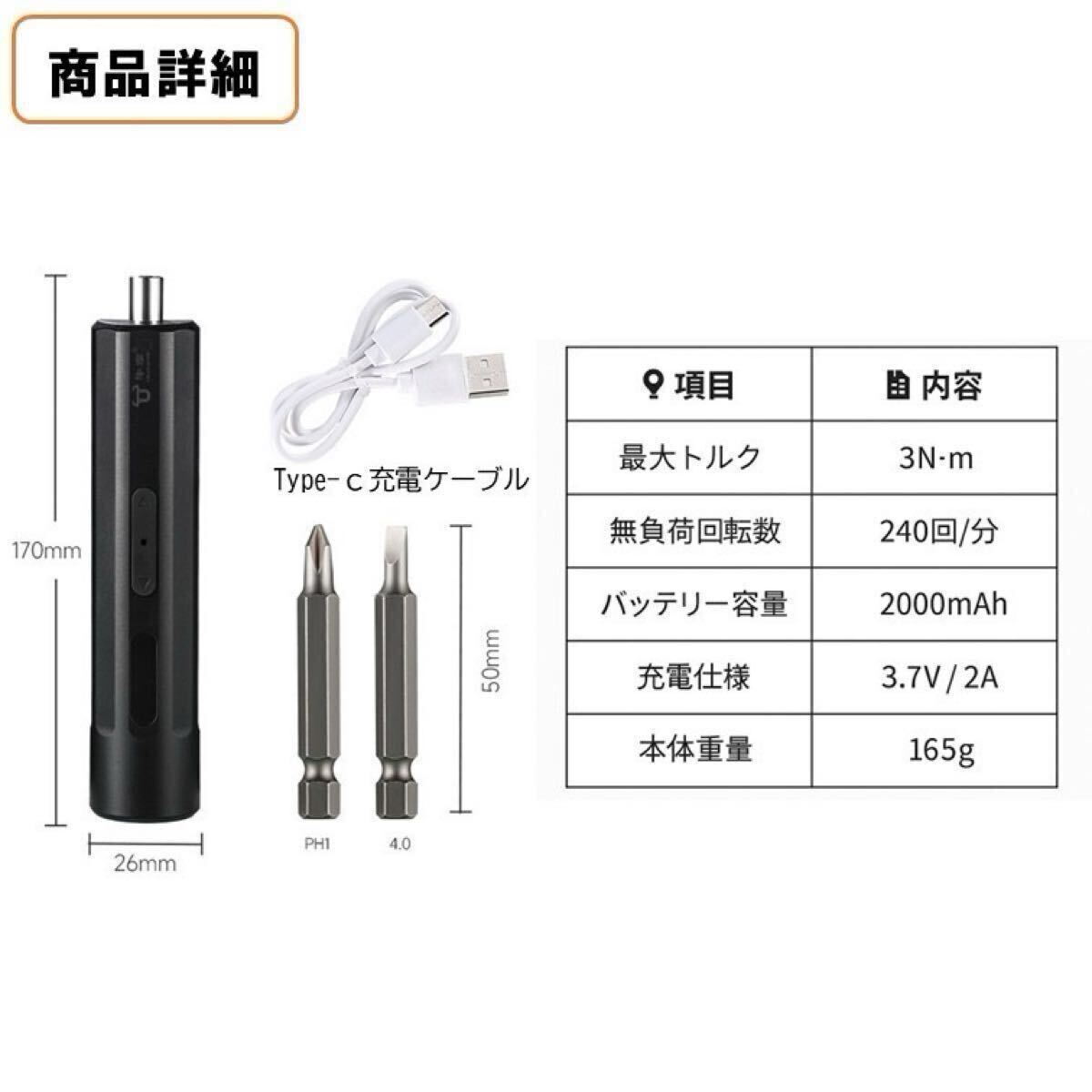 付属品:本体、ビット2本、USBケーブル(Type-C)