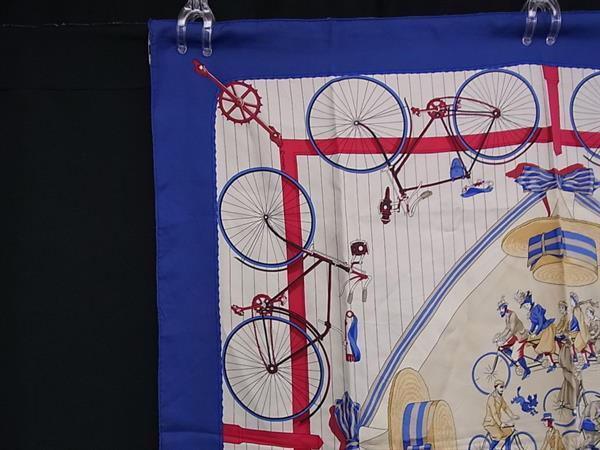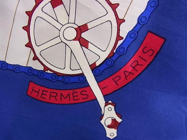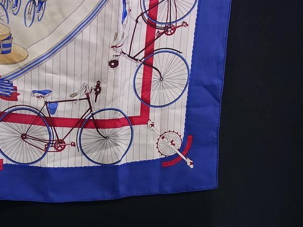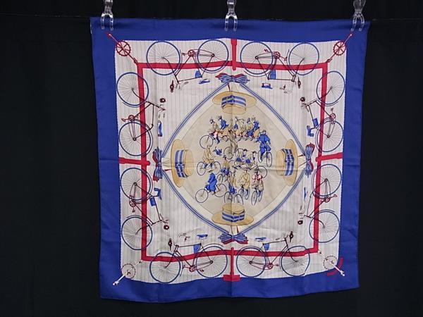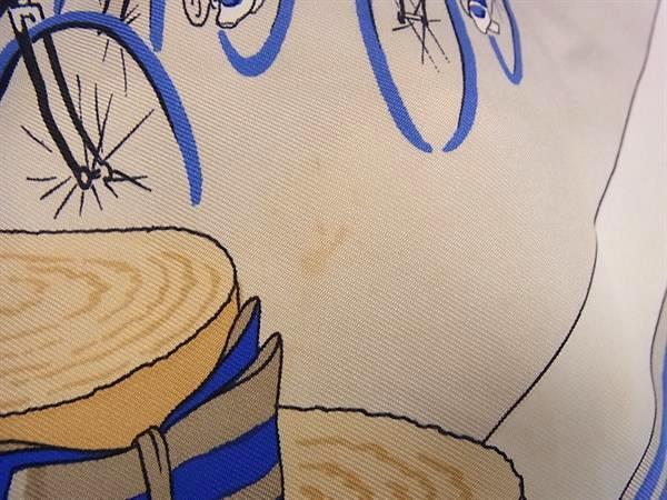 1円 HERMES エルメス LES BECANES 【自転車】 カレ90 シルク100% 大判 スカーフ ストール ショール ブルー系×マルチカラー FT2242