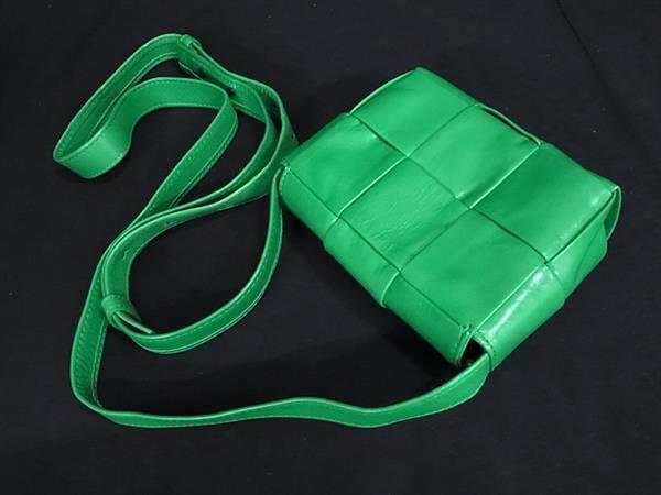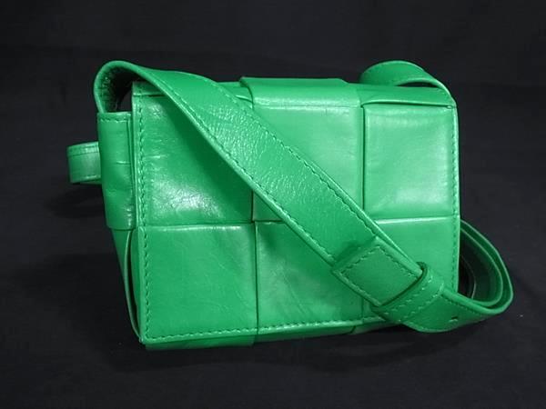 1円 ■美品■ BOTTEGA VENETA ボッテガヴェネタ マキシイントレチャート キャンディカセット レザー ショルダーバッグ グリーン系 BP4495