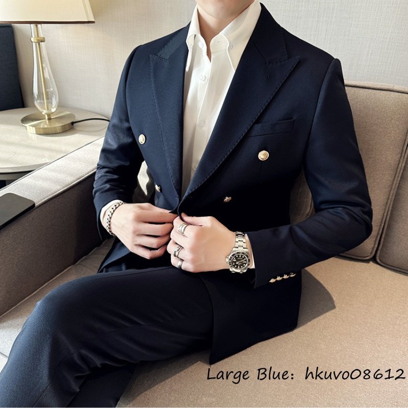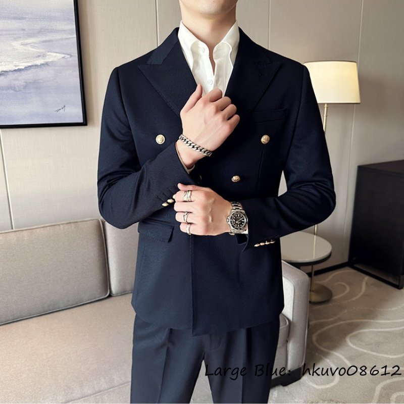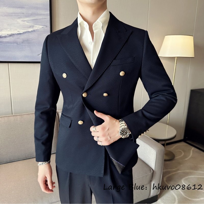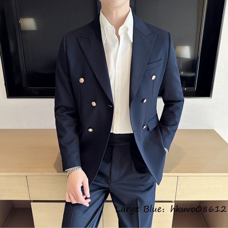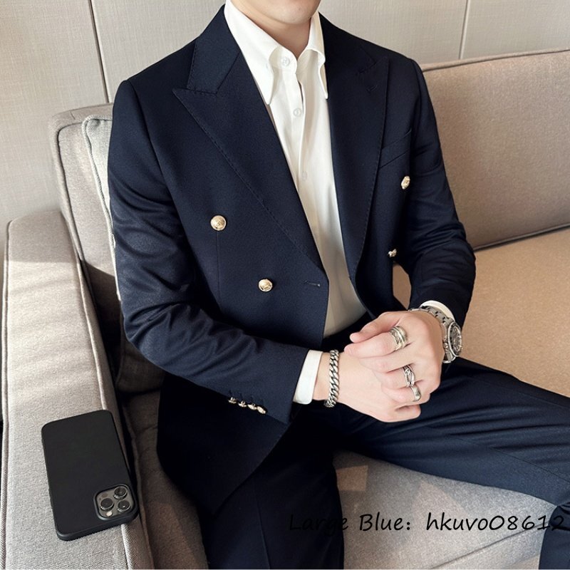 スーツセット■メンズ ダブルスーツ ビジネススーツ 上下セット シングルスーツ 最高級 無地 スリム 二つボタン 紳士 結婚式 ネイビー 4XL