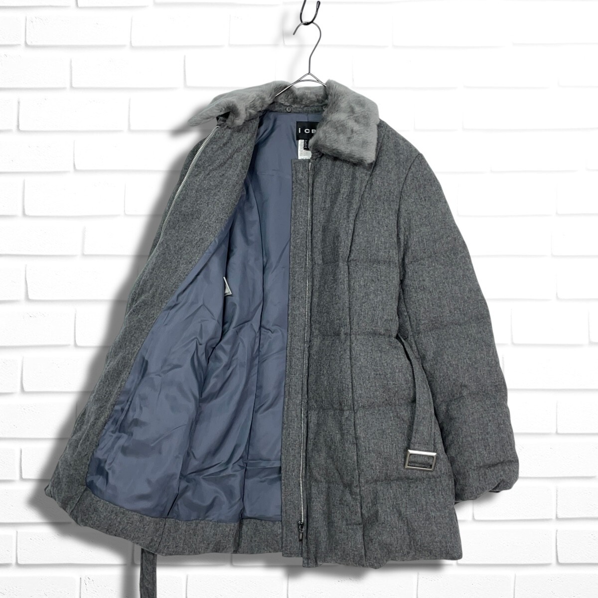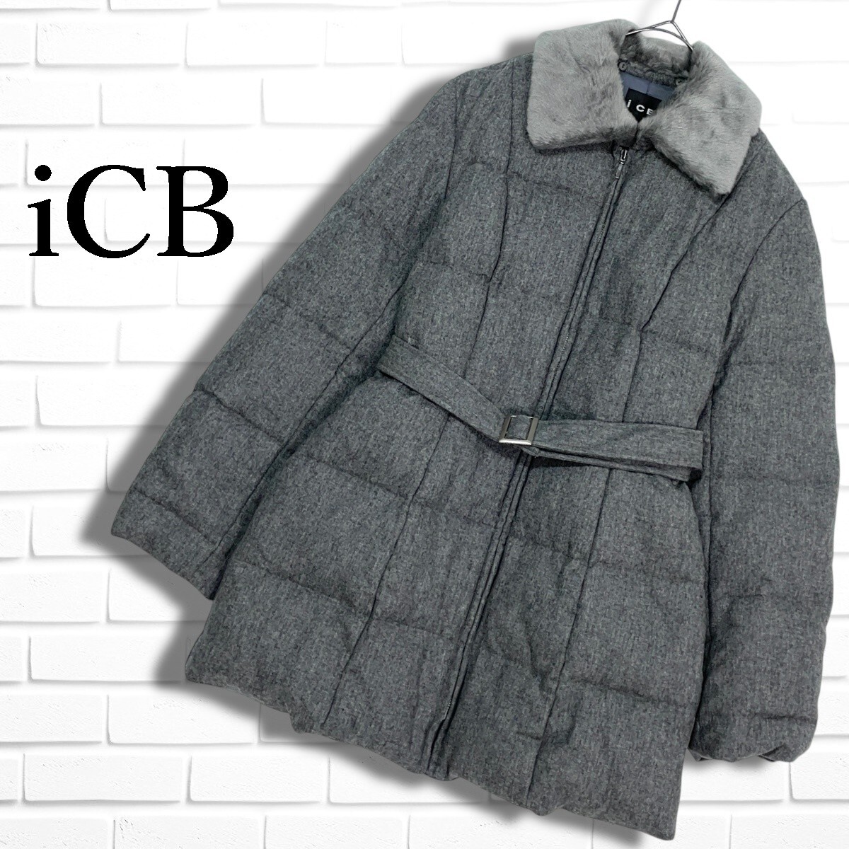 ◆美品◆ iCB アイシービー 襟ファー ウール ダウン コート グレー レディース 9 ◆送料無料◆ 4335K◇