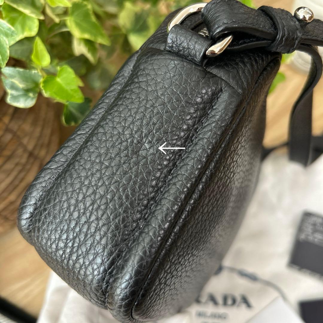 金具押し跡のレザー凹みが片方のサイドにあり。(画像6枚目)