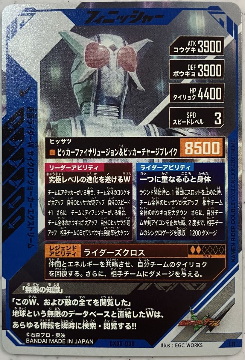 ガンバレジェンズ クロマティックX5弾レジェンドレアのCX05-030 仮面ライダーW サイクロンジョーカーエクストリームです。