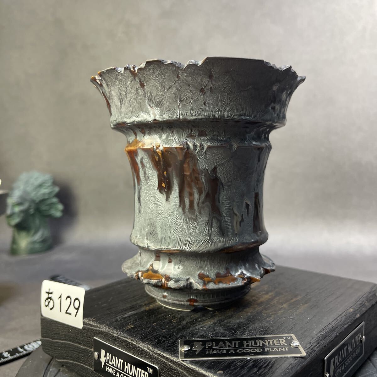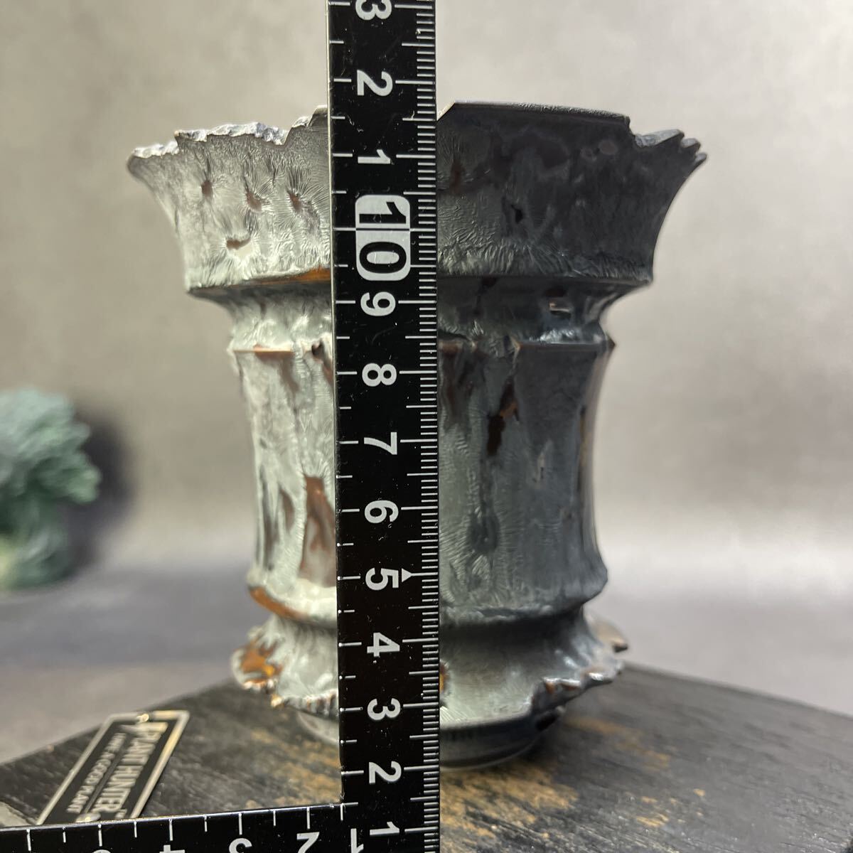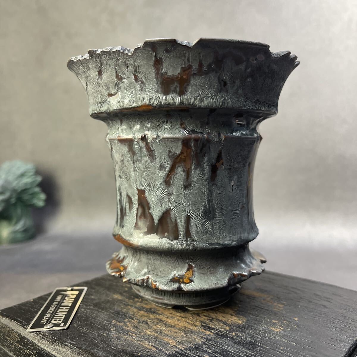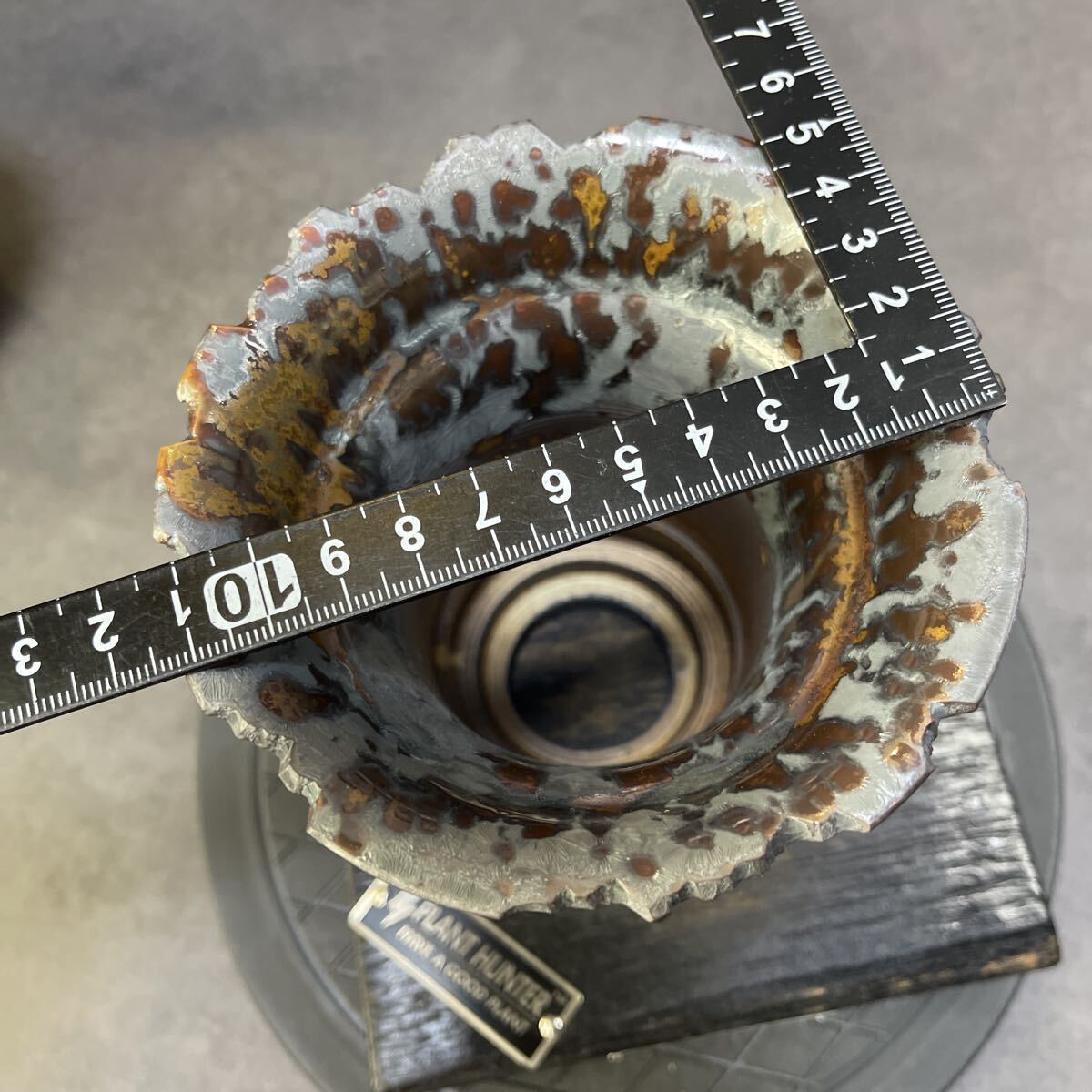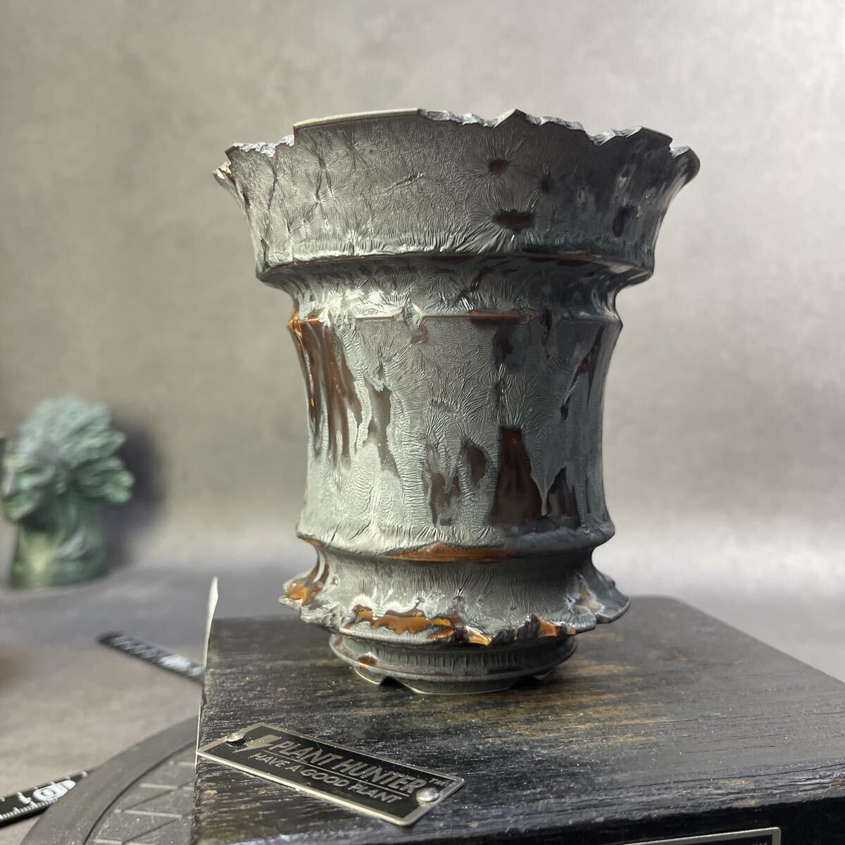 縁は岩石の断面を思わせる荒々しいカットで、全体の力強さをさらに増幅。逆フレア型のフォルムは植物のシルエットを引き立て、塊根植物、多肉植物、または自分の好きな植物と好相性です。