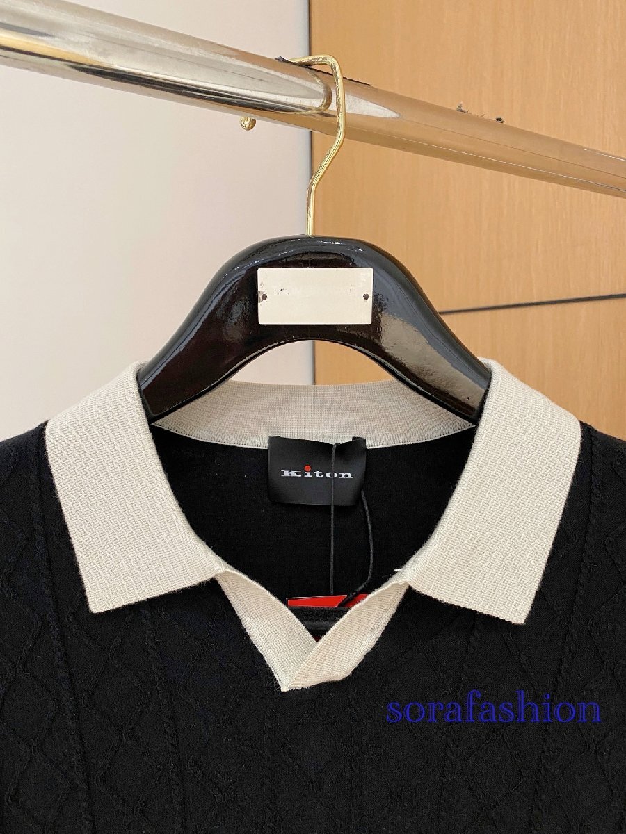 KITON キトン メンズニットポロT-シャツ トップス 長袖Tシャツ カジュアル メンズファッション イタリア 紳士服