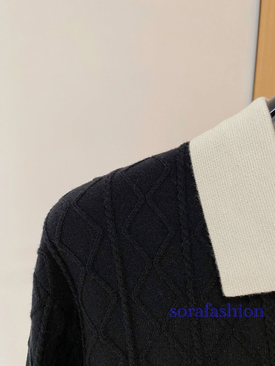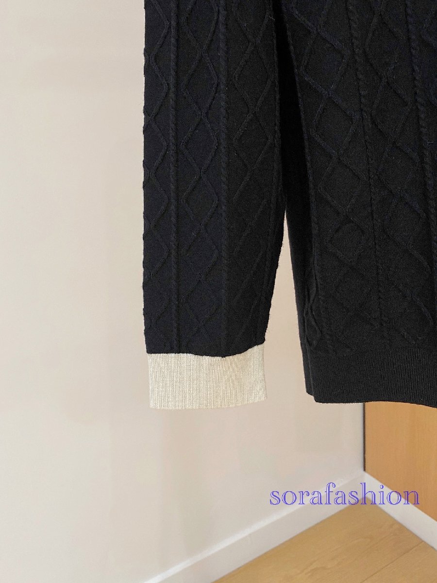 KITON キトン メンズニットポロシャツ 長袖T-シャツ トップス ブラック 50サイズ ニットカットソー 紳士服 ジャガード柄 通気吸湿
