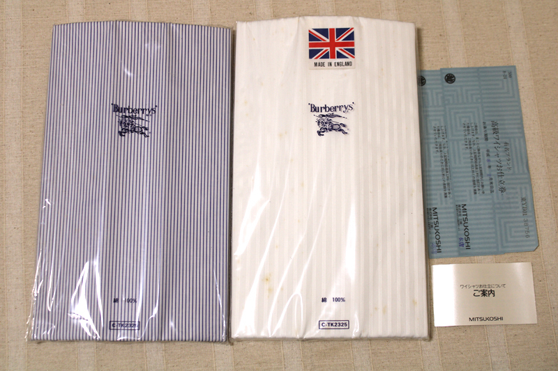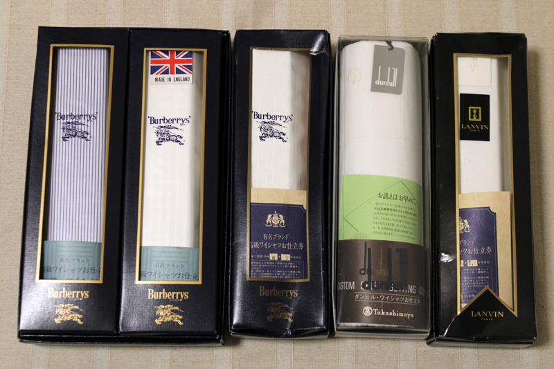 バーバリー ダンヒル ランバン「高級ワイシャツ生地4点セット」仕立て券 綿100% 日本製 高島屋 三越 お仕立券(期限切れ)未使用品
