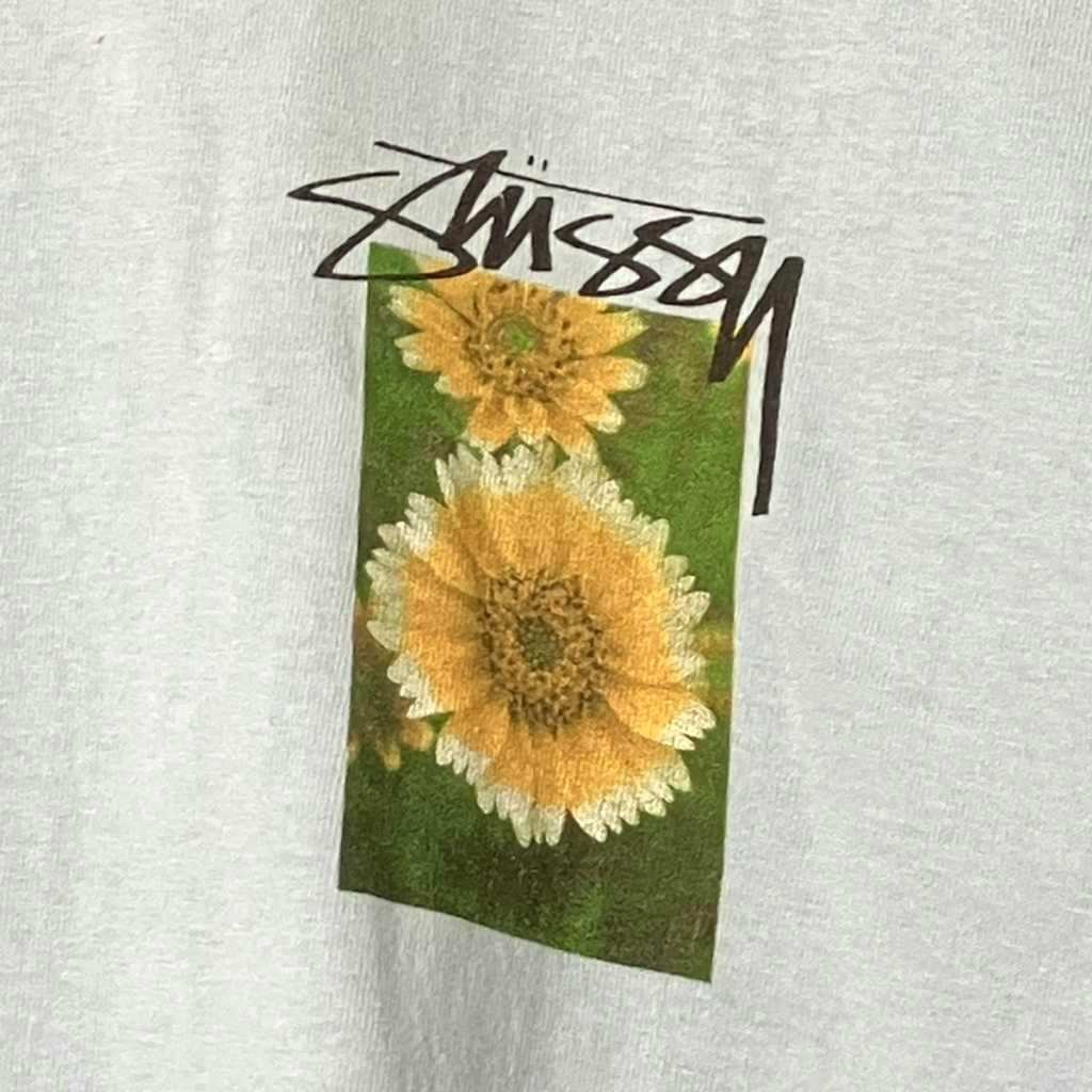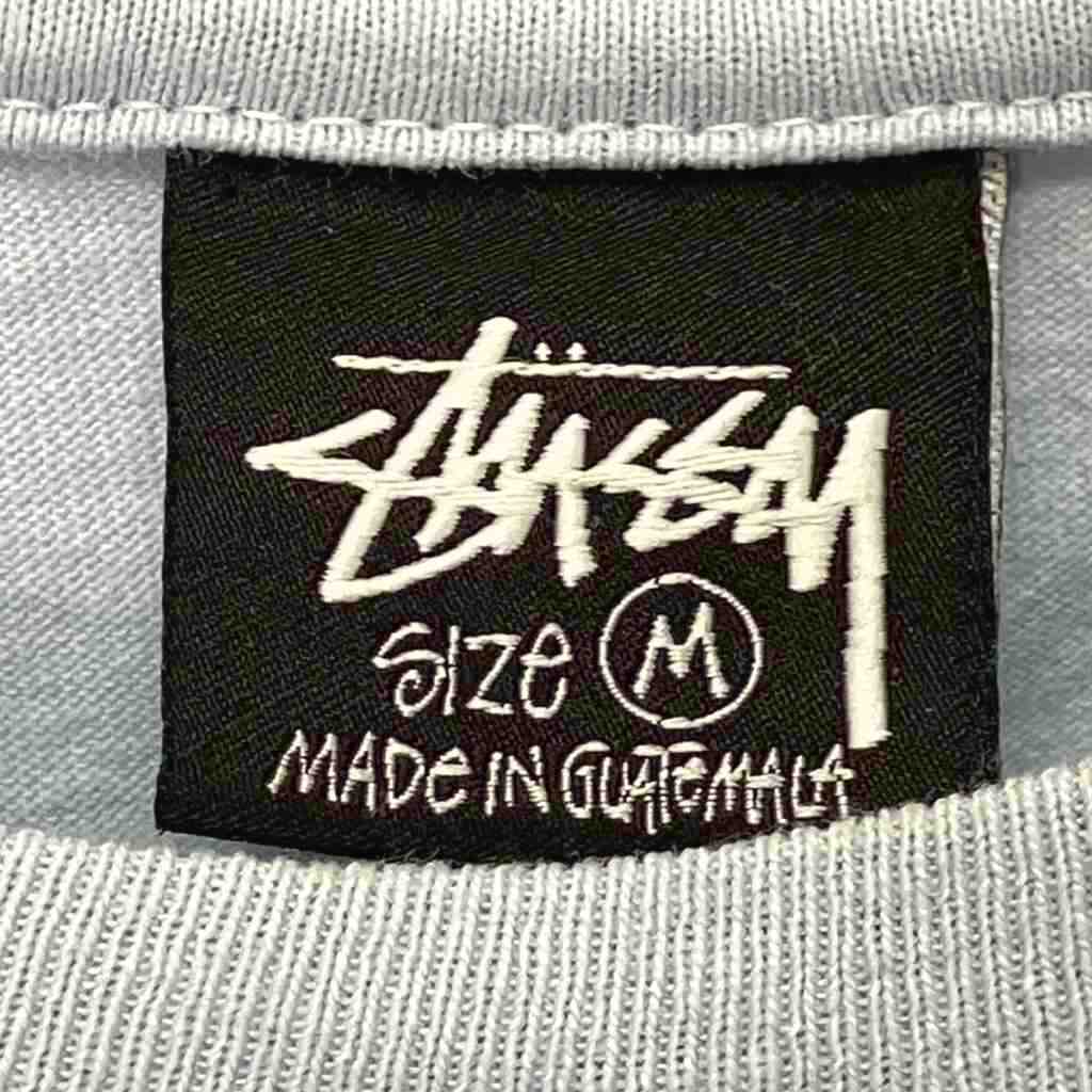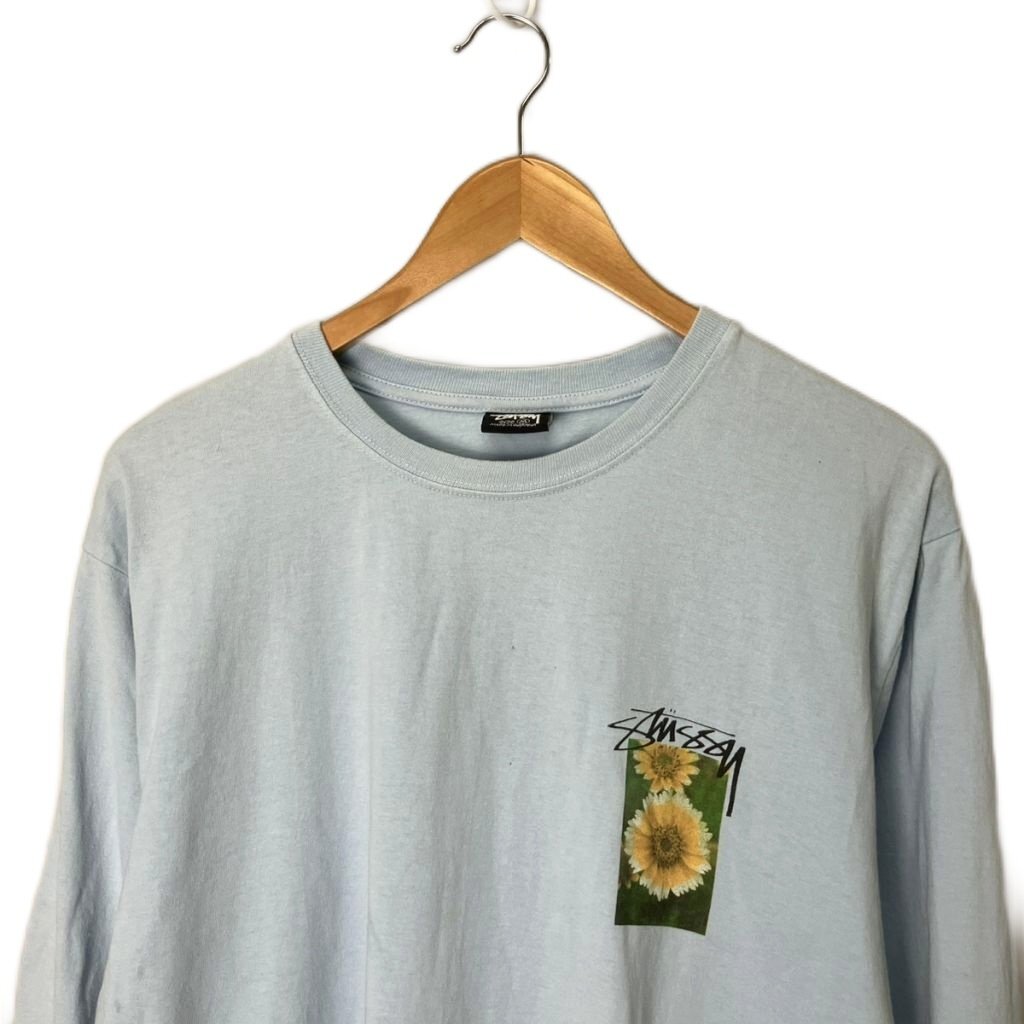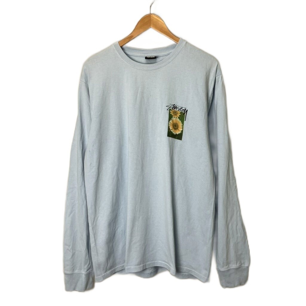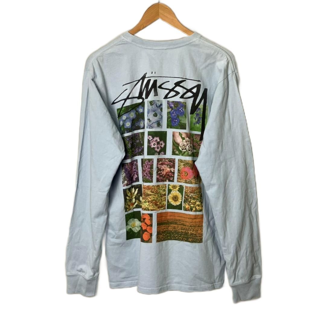 ステューシー STUSSY FLOWER GRID PIGMENT DYED L/S TEE ロンT 長袖 カットソー ロゴプリント 花 フラワー M 水色 ライトブルー メンズ