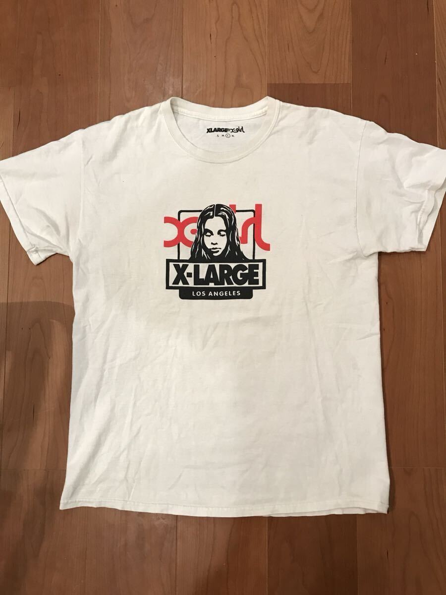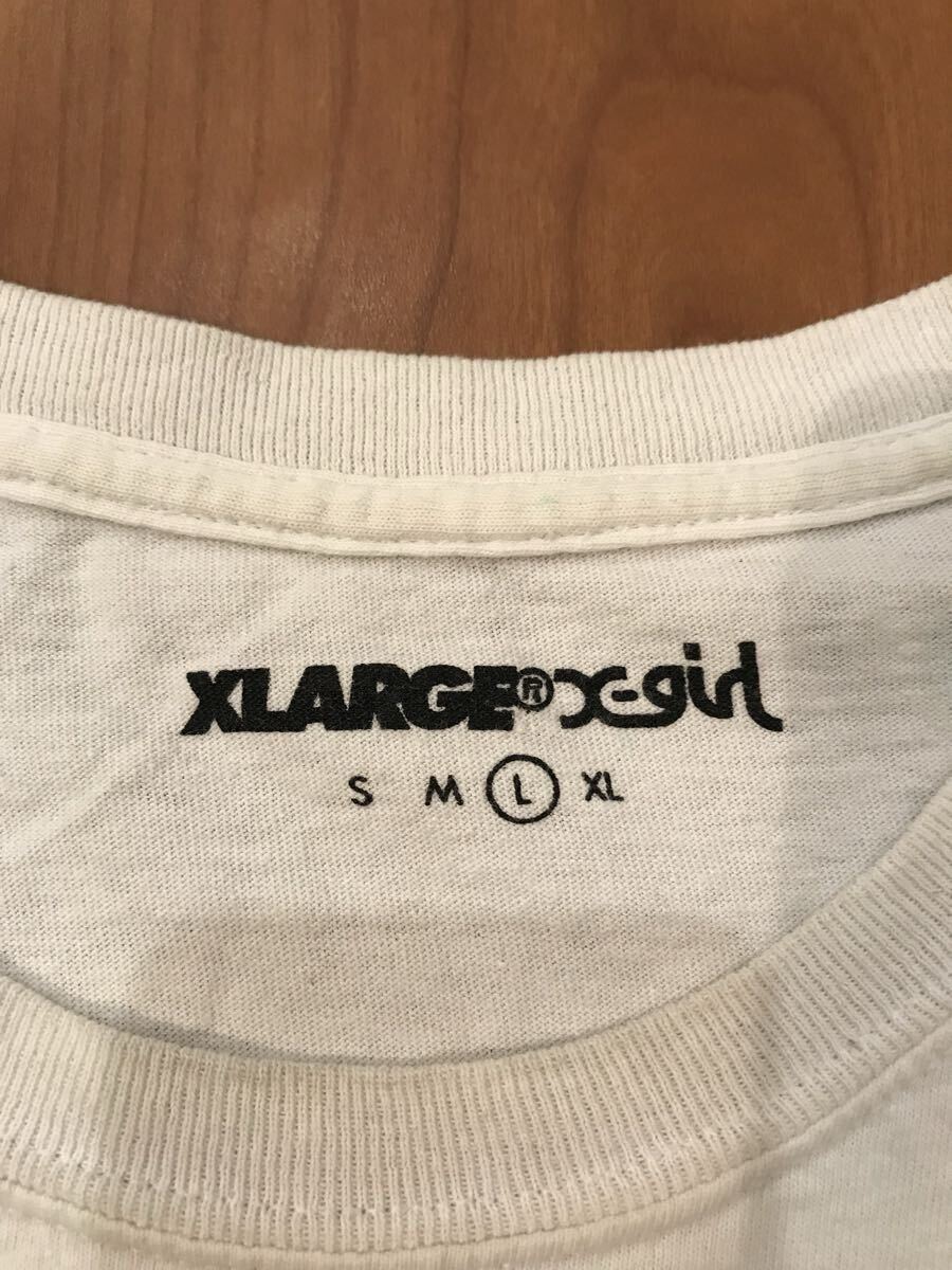 こちらは希少 コラボ X-LARGE X-GIRL xlarge xgirl 半袖 プリント Tシャツ サイズL ホワイト 白 ロゴ 別注 コットン100% 限定品 正規品 廃盤 レア
